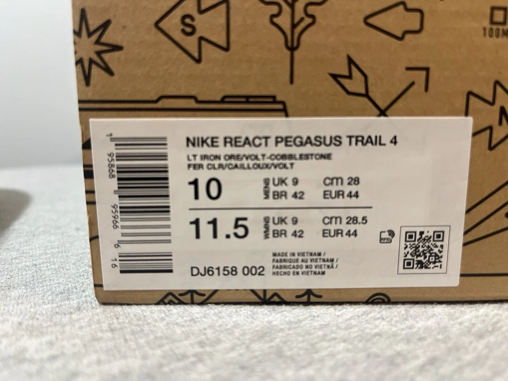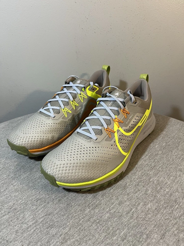 Nike React Pegasus Trail 4 LT Iron/Volt Running Men's Shoe Size 10 DJ6158-002 New with half a box, no rips or tears. We always carefully package and ship right away. Reach out with any questions! Men's 10 The pair in our photos is the exact pair you are purchasing Make sure to follow us. We post shoes often and offer bundle pricing.