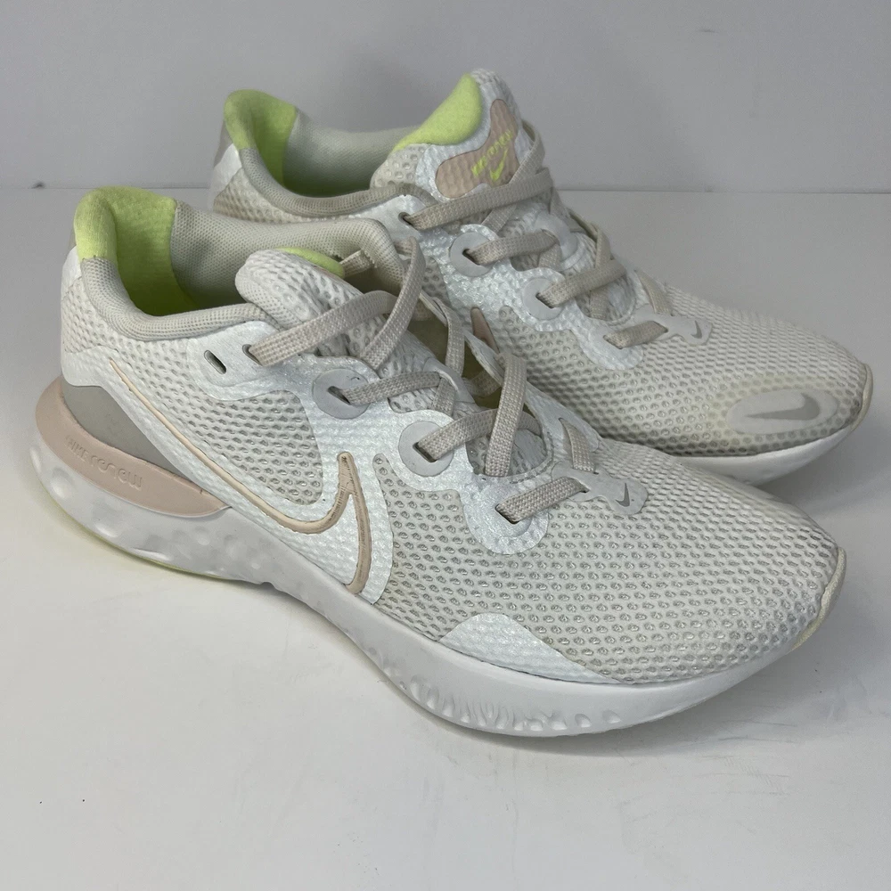 Elevate your athletic footwear game with these Nike Renew Run sneakers for women. These shoes feature a low top shoe shaft style and a lace-up closure, giving a secure fit. The shoes come in a white color and are accented with the Nike logo. Made with breathable, lightweight, and comfortable mesh material with arch support and cushioning, these shoes are perfect for various activities such as running, jogging, gym training, and more. The outsole is made of rubber, providing excellent grip and durability. With a foam insole and memory foam padding, these shoes offer ultimate comfort and support to your feet. 100% CUSTOMER SATISFACTION IS OUR GOAL! Our items are always carefully examined for condition, measured if necessary, and photographed in a climate controlled and smoke-free environment. We make every attempt to accurately describe and clearly picture the items we have for sale. Please, ALWAYS view all of the photos. We value your business and our goal is your complete satisfaction. FAST SHIPPING All items are packaged with care and shipped out the same or next business day via USPS, FEDEX, or UPS with tracking numbers so you are always informed. RETURNS We offer a 30-day return policy. All items must be unused and unopened in the condition in which they were received, with original packaging, and all accessories included for return. REVIEWS - CUSTOMER SATISFACTION - COMMUNICATION We aim to make you happy. After you receive your shipment, please leave a positive review . If you have concerns or questions about your order, please contact us so we can resolve the issue. We will do our best to make you satisfied. THANK YOU FOR YOUR BUSINESS!