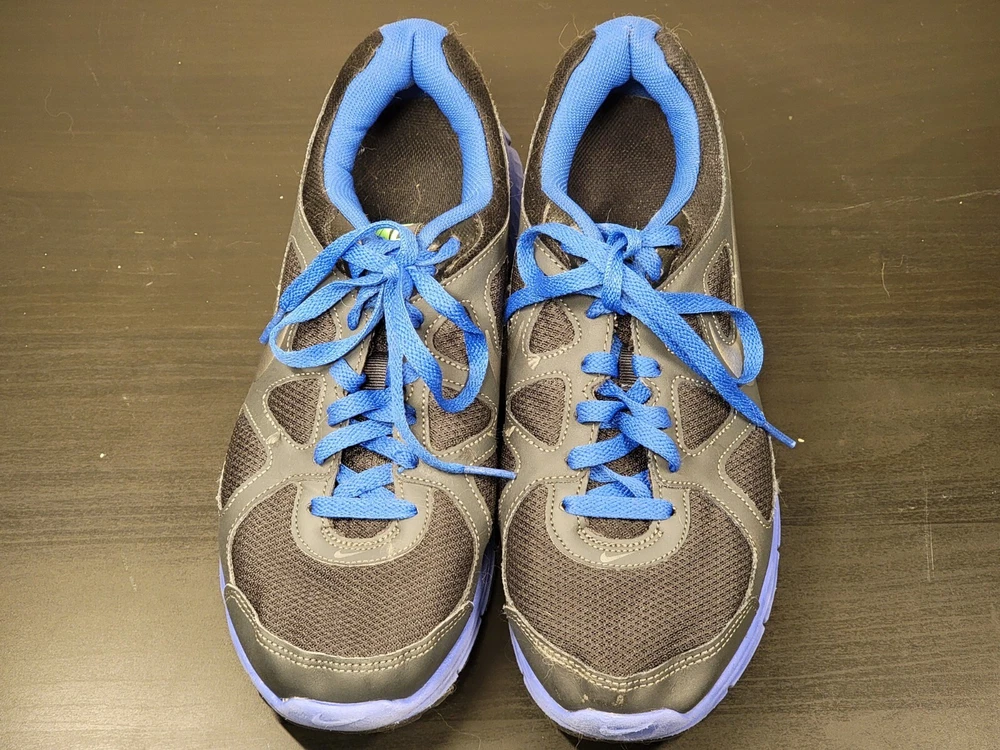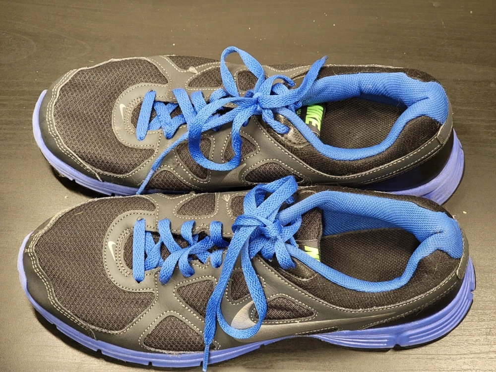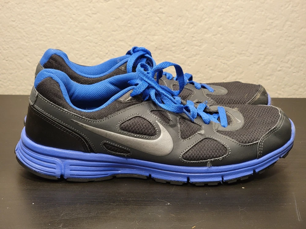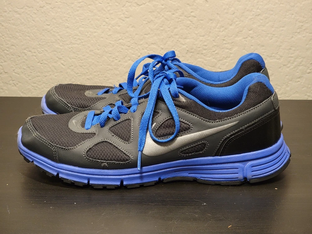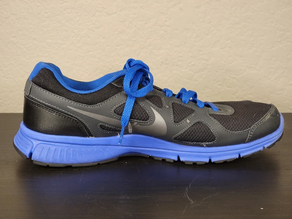 Nike Revolution 2 Athletic Shoes Mens Size 10.5 Black Sneakers 488183-010 Shoes are in excellent pre-owned condition. Treads are in excellent condition with little wear. Overall these shoes look like they were worn little.