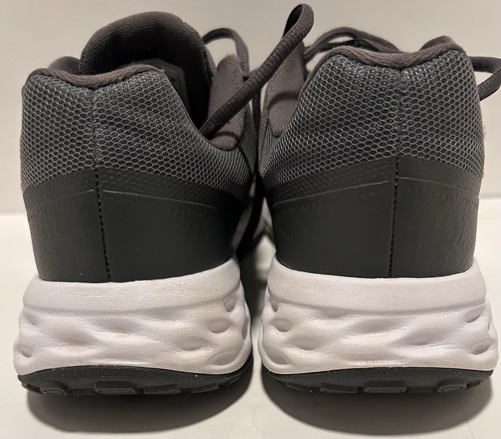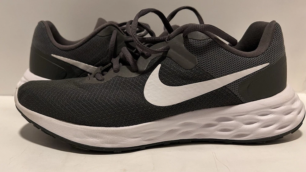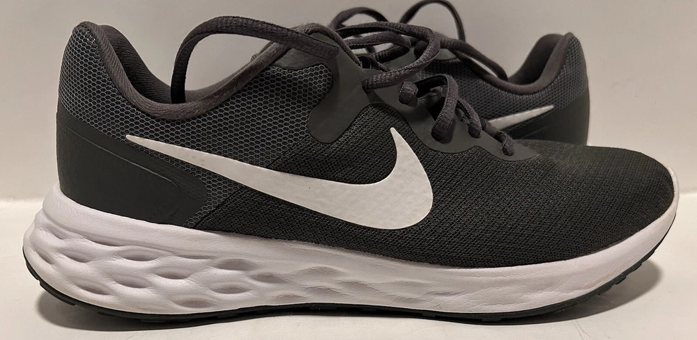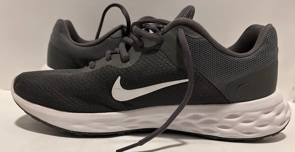 Elevate your athletic experience with the Nike Revolution 6 Men's Running Shoes, crafted for a seamless blend of comfort and performance. The Iron Gray colorway paired with the Next Nature design offers a sleek look that complements any activewear ensemble. A UK Size 8.5 and US Size 9.5, these sneakers are ideal for individuals who value both style and functionality. Breathable mesh upper material and a comfortable fabric insole ensure your feet stay cool and supported, while the durable rubber outsole provides excellent traction on various surfaces. Whether you're hitting the pavement for a run, exploring the city, or simply going about your day, these shoes are designed for versatility, with features that make them suitable for walking, CrossFit, and running & jogging. The Nike Revolution 6 is a testament to Nike's commitment to lightweight, performance-ready athletic wear. The bottom of the shoes do have some sort of discoloration please look at pictures.Thank you 😊 Open To Reasonable Offers I ship Same Or Next Business Day If You Have Any Questions Please Feel Free To Message Me Thank You For Looking At This Item