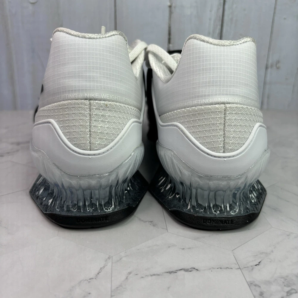 New with defects. New with box. There are some stains on the shoes which are pictured. Please look through all pictures thank you. *Box is missing lid* Nike Romaleos 4 White Black Mens Sz 11 Weightlifting Shoes CD3463-101 *No Lid*