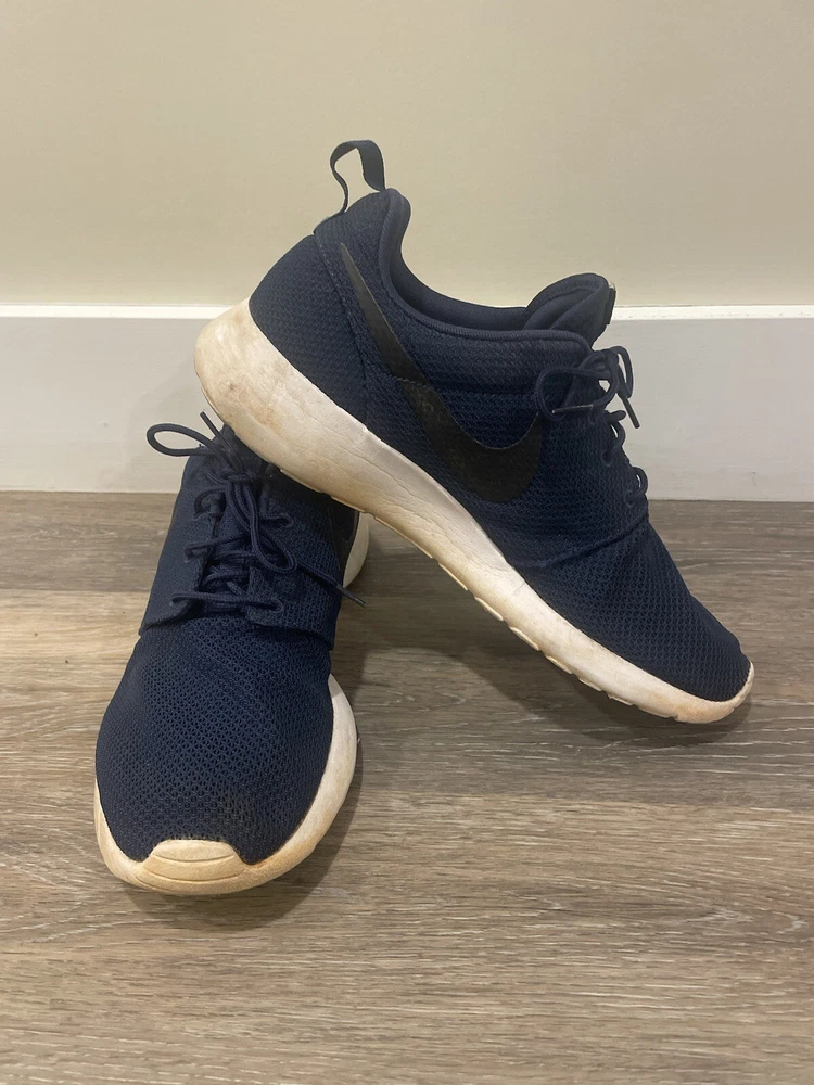 Nike • Nike Roshe Running/Athletic Shoes Men's US 11.5 Midnight Navy Blue • Used But In Very Good Condition • Size: Men’s 11.5 • Shipped With USPS Priority Mail Box Please see photos for further details and let me know if you have any questions