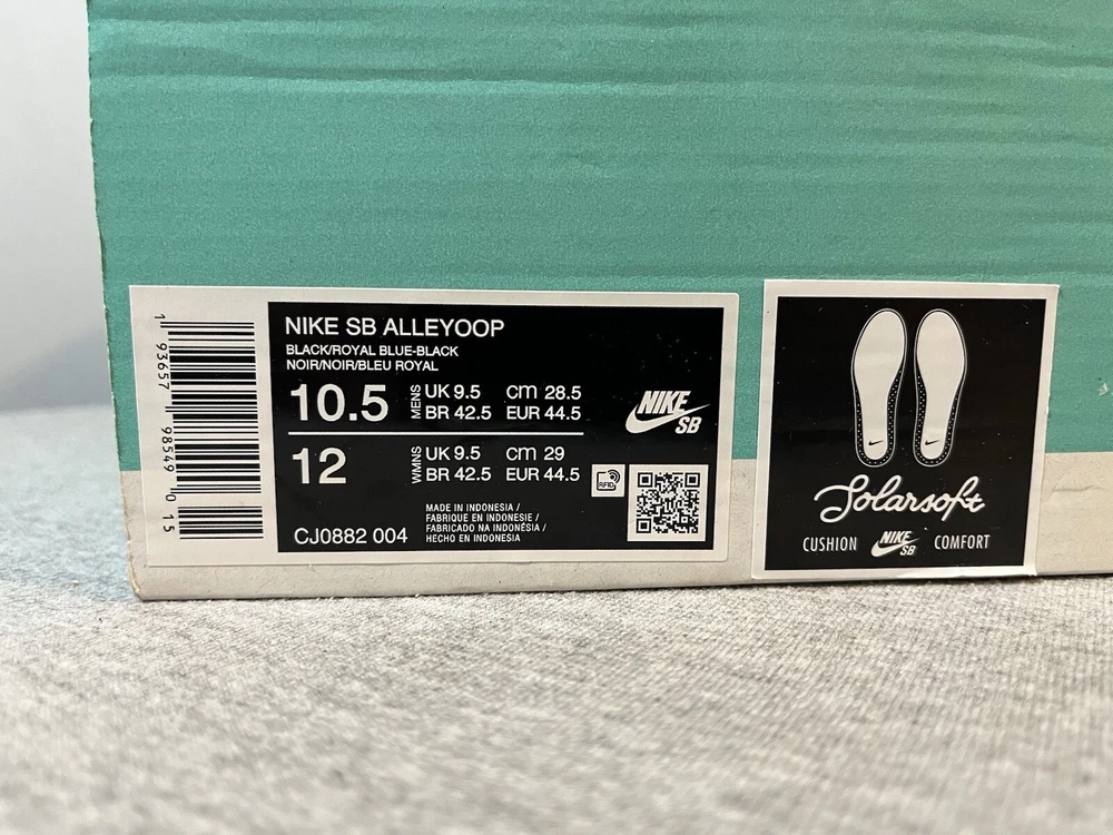 Nike SB Alleyoop Black/Royal Blue Skateboarding Men's Shoe Size 10.5 CJ0882004 New with the box. We always carefully package and ship right away. Reach out with any questions! Men's 10.5 The pair in our photos is the exact pair you are purchasing. Make sure to follow us. We post shoes often and offer bundle pricing.