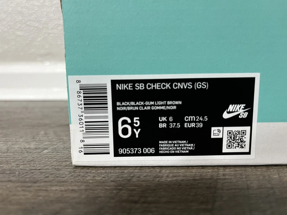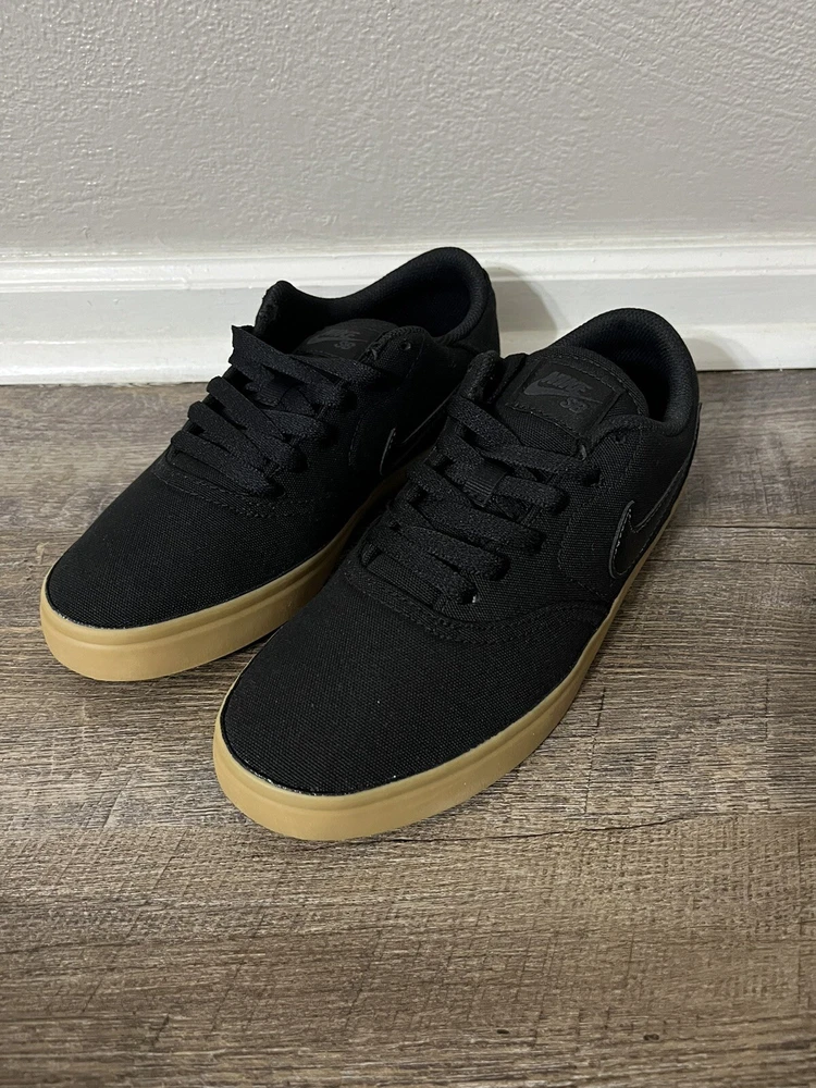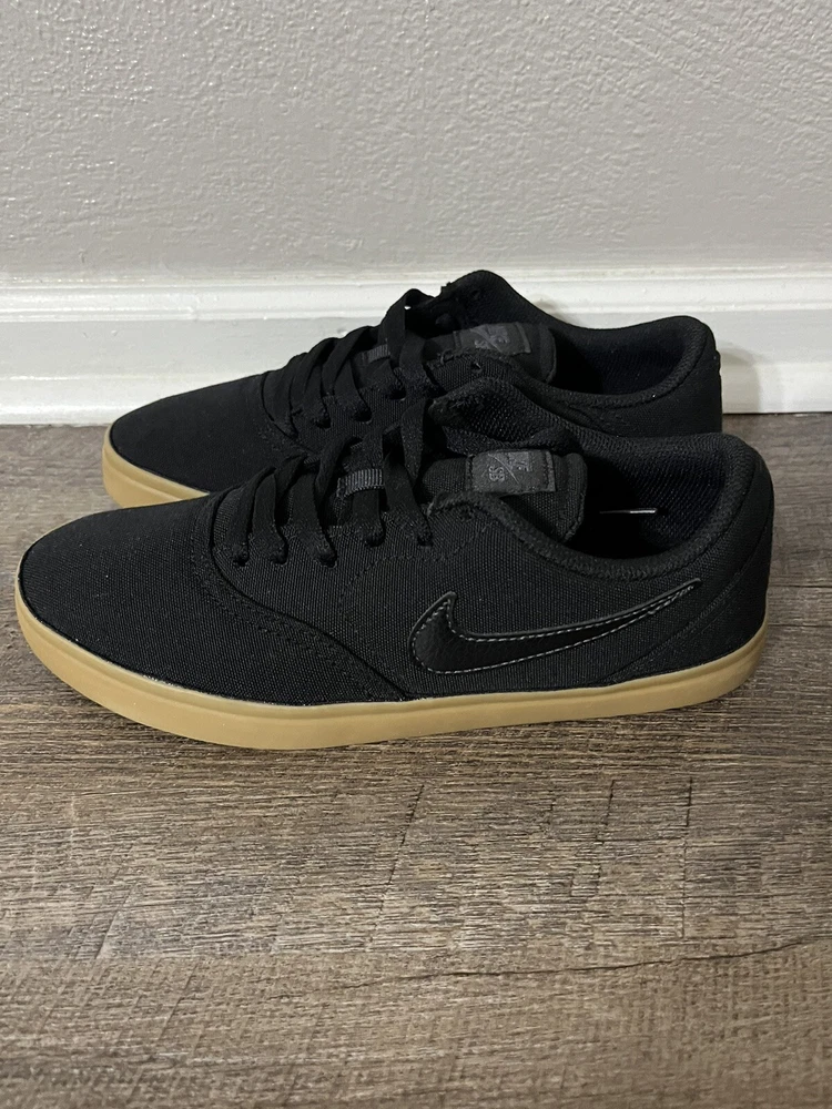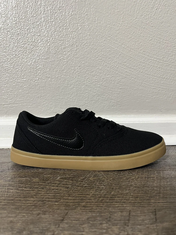 Nike SB CHECK Canvas GS Black Gum Skate Boarding Youth Shoe Size 6.5/Women's Size 8 905373-006 New with the lid of the box missing, no rips or tears. We always carefully package and ship right away. Reach out with any questions! Youth 6.5 & Women's 8 The pair in our photos is the exact pair you are purchasing Make sure to follow us. We post shoes often and offer bundle pricing.