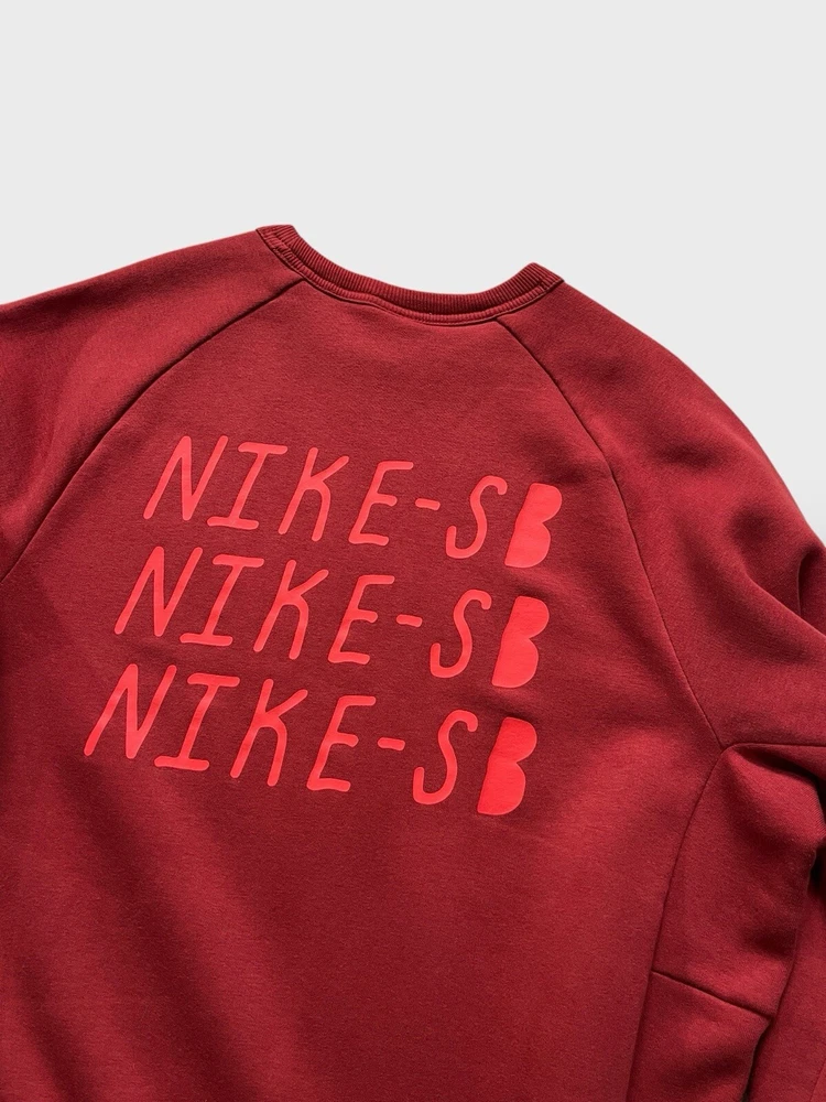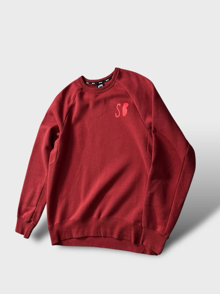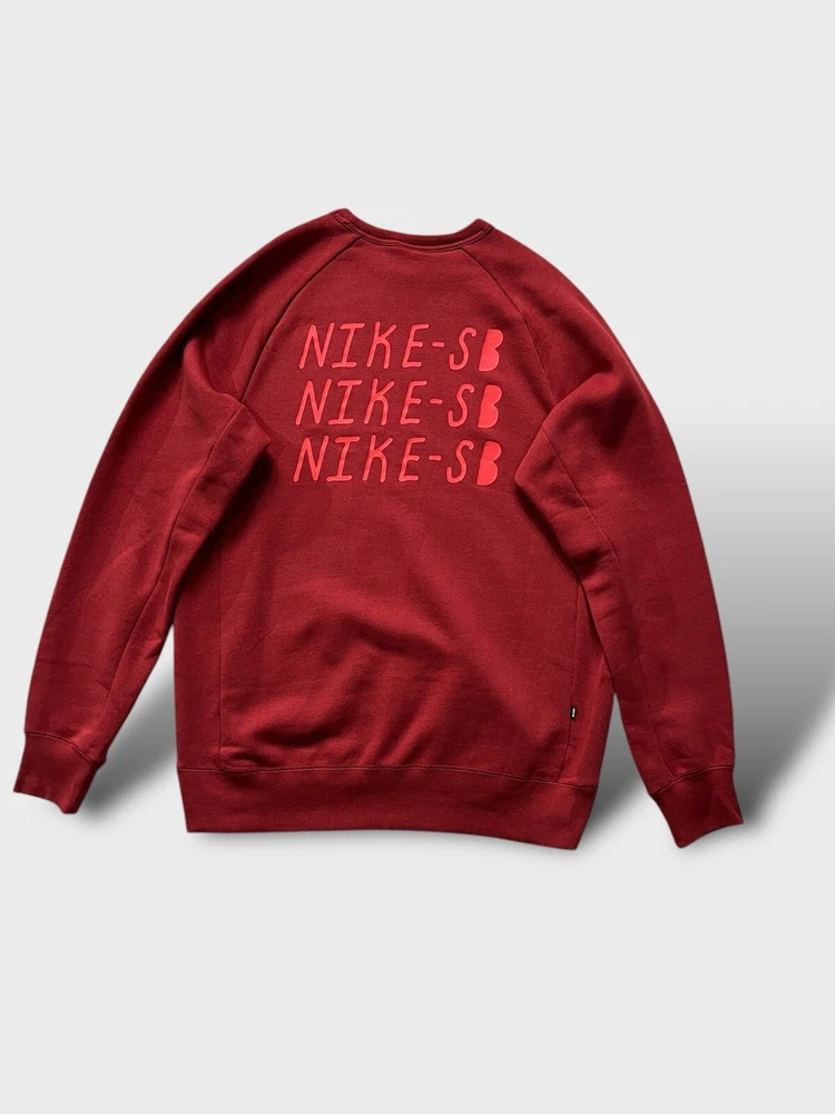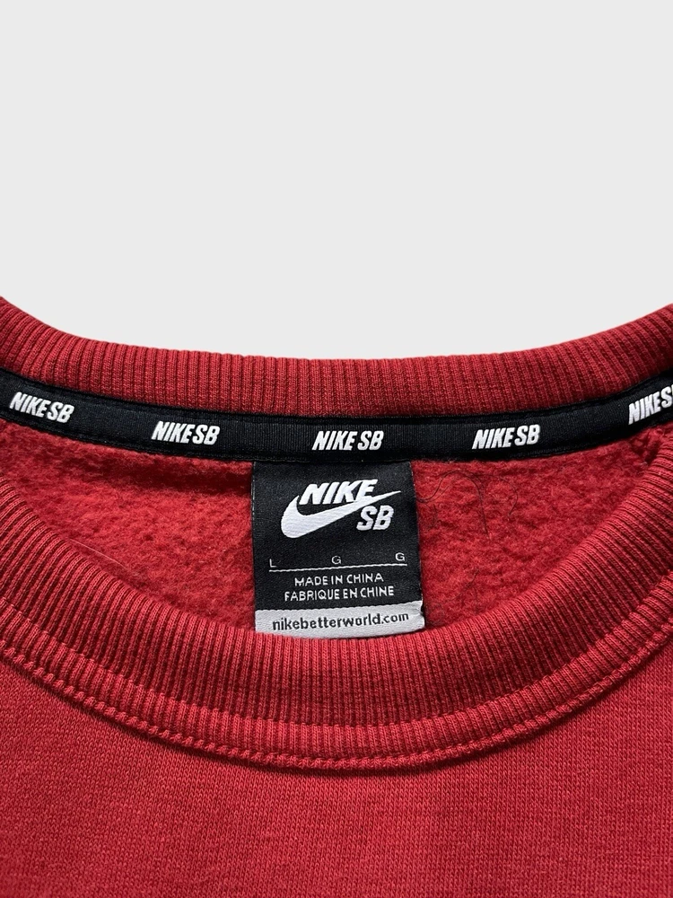 Nike SB graphic sweatshirt | red ๐ก like new condition- mint, no signs of wear whatsoever, possibly unworn (the lining is still like a sweatshirt from the shop indicating it hasn't been washed once yet) ๐ก graphic print on chest and the back ๐ก ribbed crew neck, cuffs and hem ๐ก 78% cotton 22% polyester 2% elastane ๐ size L p2p 23" l28"