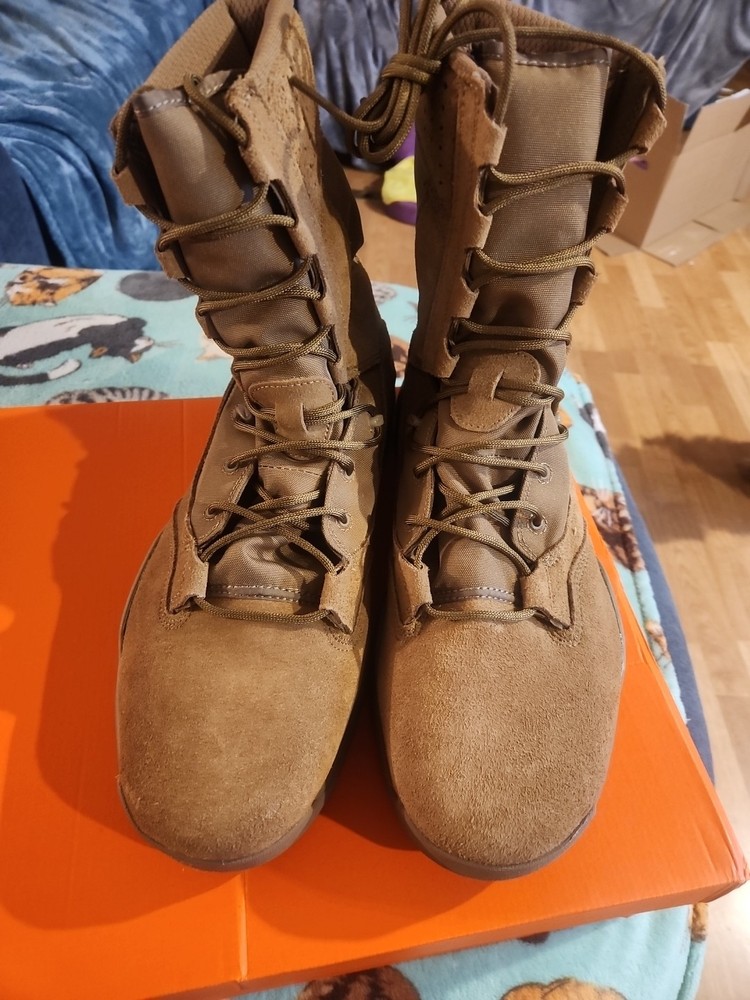 Elevate your outdoor and military game with these Nike SFB 2 8" leather boots. Designed with a mid-top shaft style, these boots are perfect for hiking, hunting, and other outdoor activities. The brown color and suede and leather upper material provide a stylish look that can be dressed up or down. These boots are customized and come in a size 14 with a medium width. The style code for this product is AQ1202-900. Perfect for all seasons, these boots are a great addition to any wardrobe. Whether you're heading to the mountains or the battlefield, these Nike SFB 2 8" boots have got you covered.