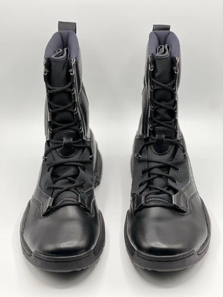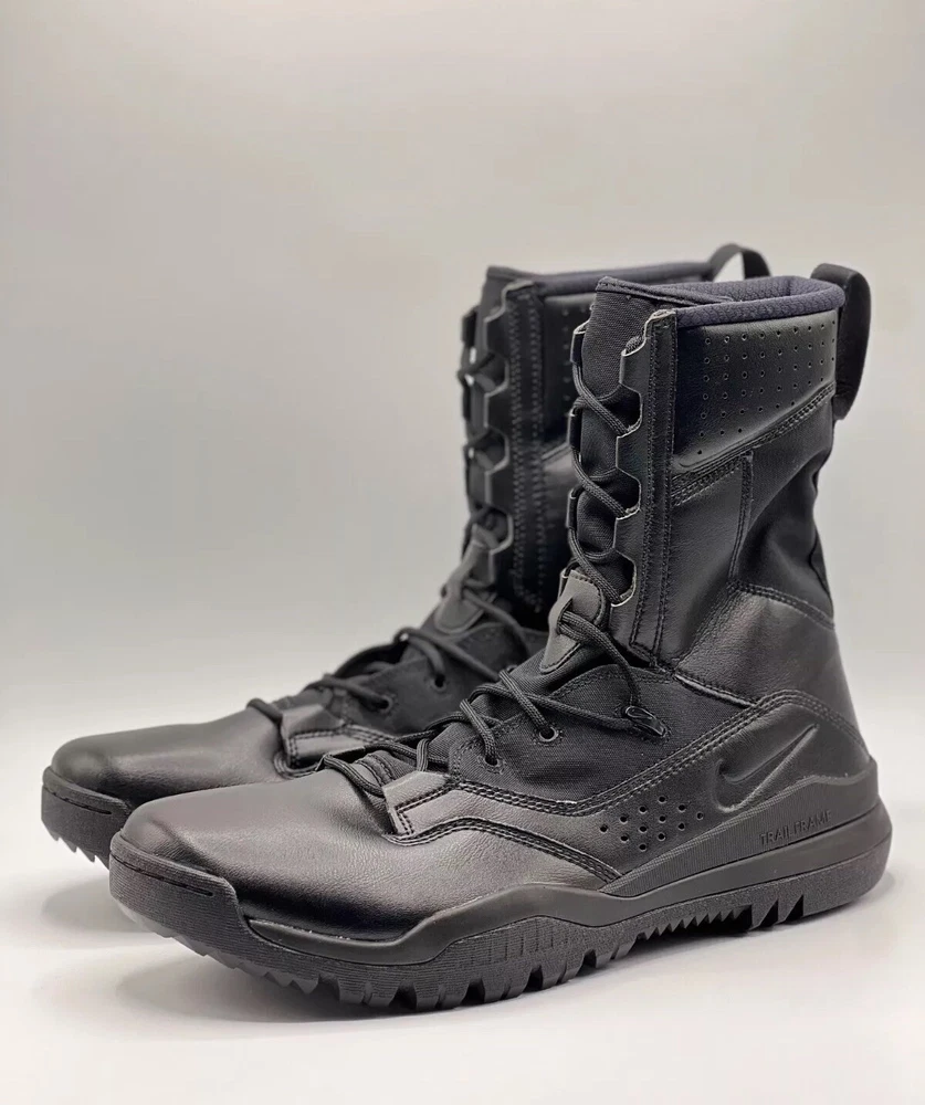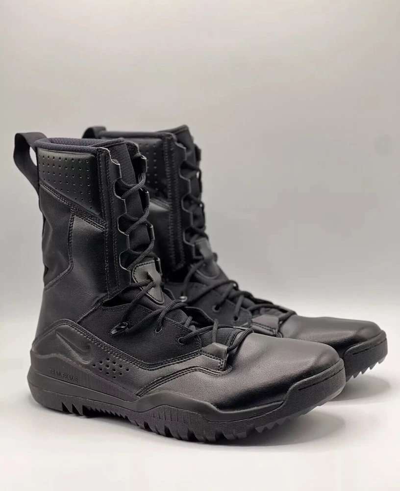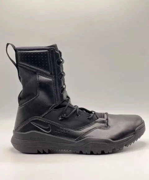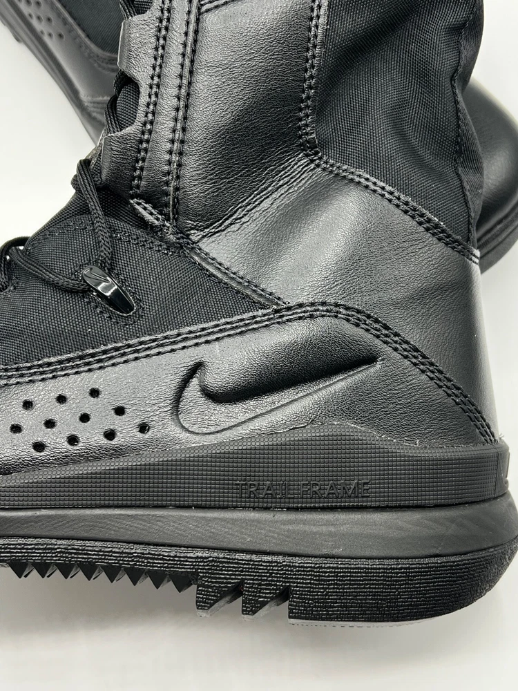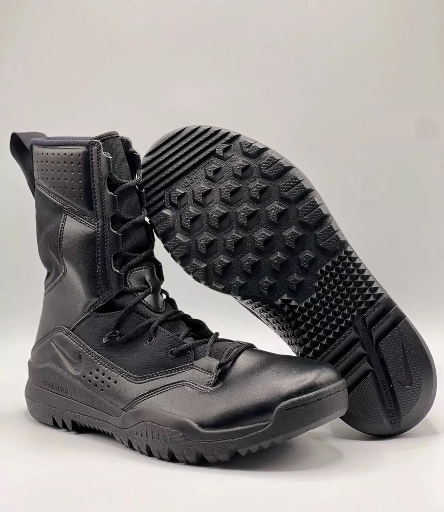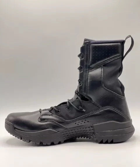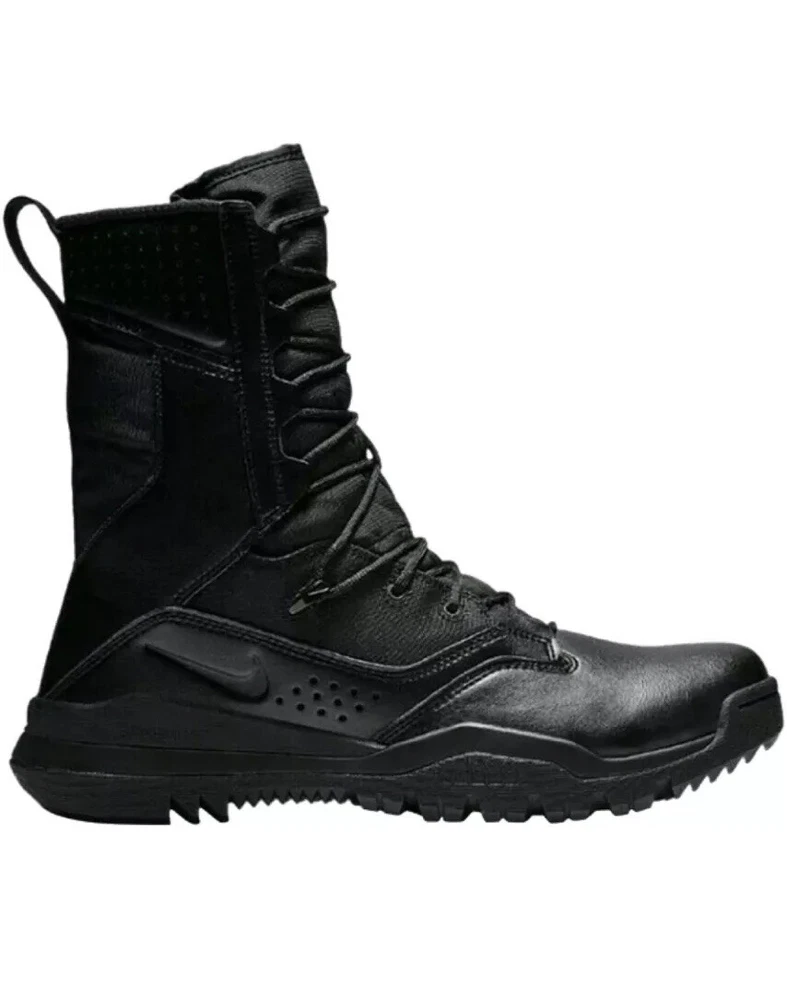 Step up your outdoor game with the Nike 8 Inch Special Field Boots SFB Field 2 Tactical 8" Military Combat Utility Boots. Designed with a robust leather upper and a solid black colorway, these boots are tailored for men who value durability and style. The lace-up closure ensures a secure fit, making them ideal for activities that require agility and comfort. Breathable and cushioned, the boots feature a foam insole and a durable rubber outsole for superior performance and grip. With a standard shoe width, these limited edition boots are a perfect blend of functionality and comfort, suitable for a variety of outdoor settings, from the battlefield to the trails.