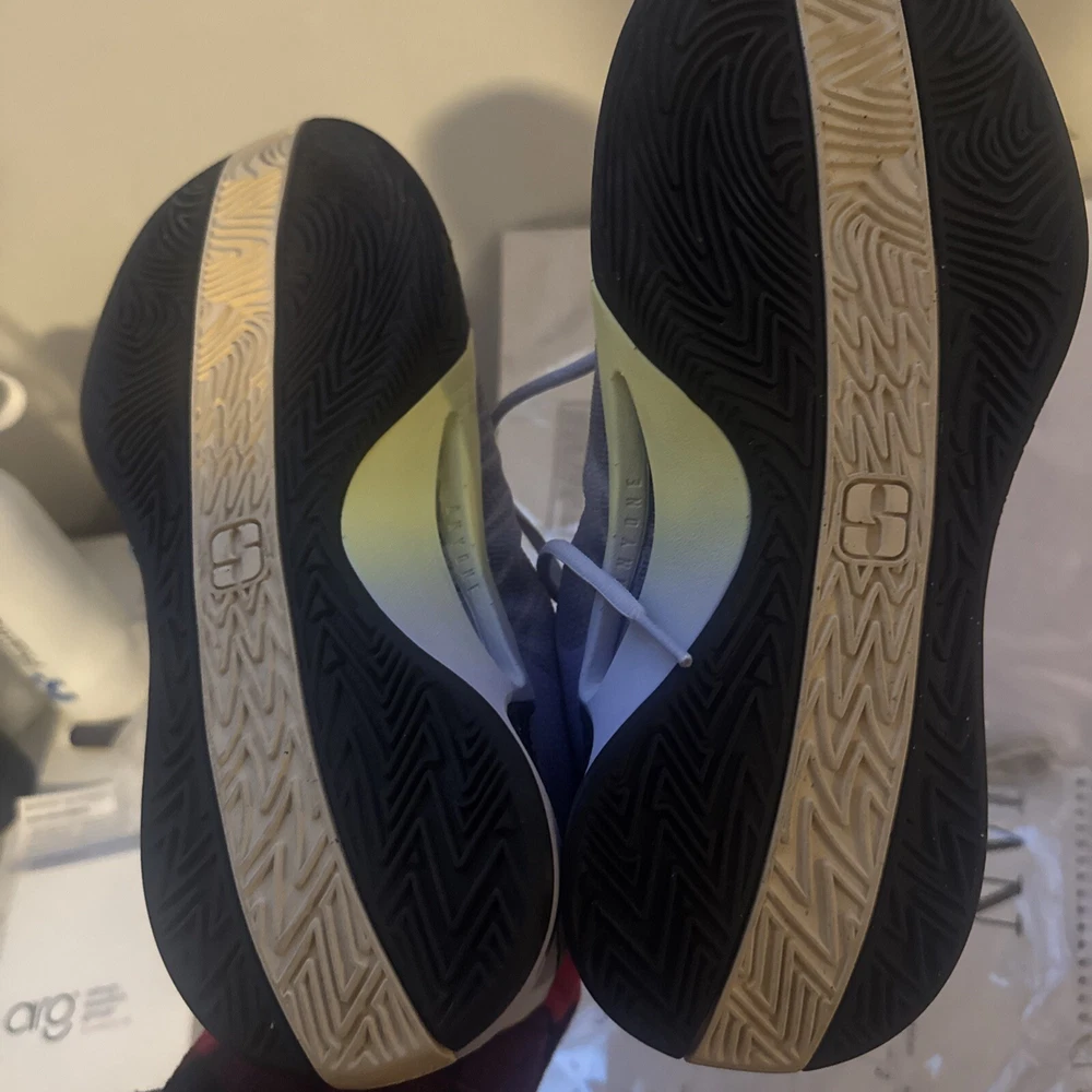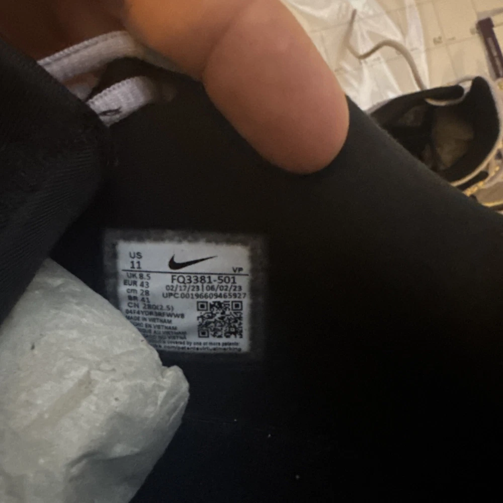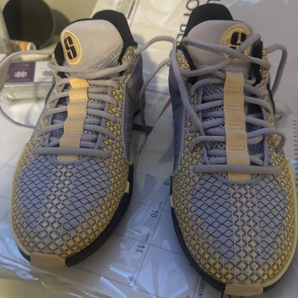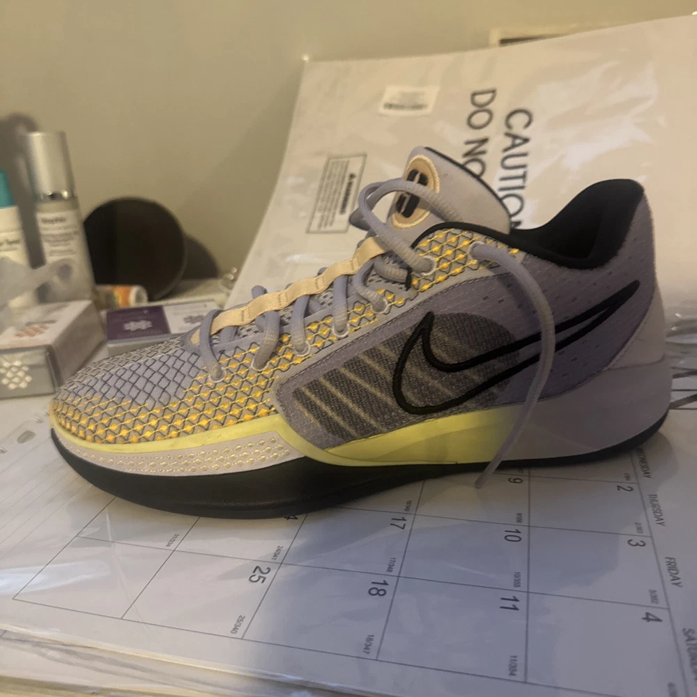 This Nike Sabrina 1 sneaker in "Spark" Oxygen Purple, Yellow, and Black is designed for women in US size 11 (UK 8.5, EU 43). It features a low-top style with a standard shoe width and lace-up closure. The model is part of the Nike Sabrina product line and has a style code of FQ3381-501. Ideal for activewear or casual occasions, these sneakers are not vintage and are made in Vietnam. The color combination of purple, yellow, and black adds a vibrant touch to the athletic design. Signed by Nike, these shoes are new with defects. Defects are missing sole wording