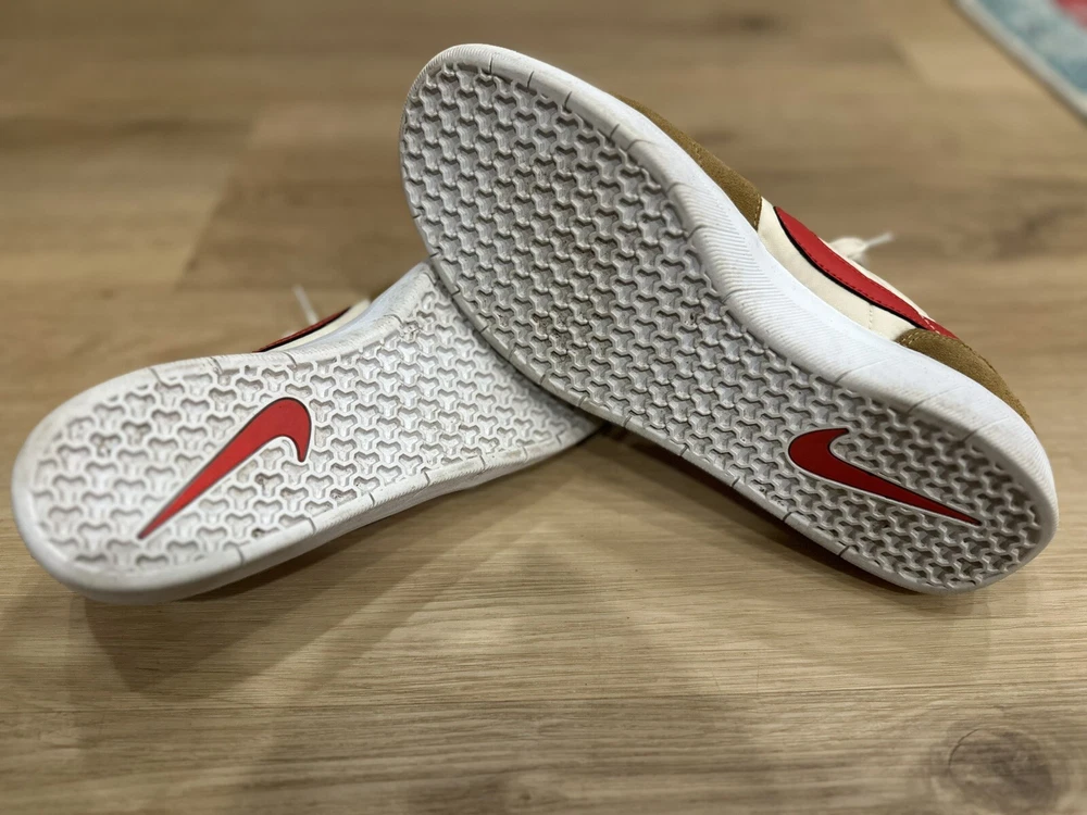 Elevate your shoe game with these Nike SB Team Classic Mars Yard Color Way sneakers in a stylish golden beige and red design. These shoes are perfect for both casual and activewear occasions, with a low top shoe shaft style and lace-up closure for a comfortable fit. The cushioned and comfortable features of these skate shoes make them ideal for school, cross-training, running, and jogging. Crafted from high-quality leather and fabric materials, these sneakers have a rubber outsole and foam insole for durable and lasting wear. The solid pattern and colorful theme of these shoes make them a great addition to any wardrobe. Whether you're looking for a stylish and comfortable pair of sneakers for the summer, fall, spring, or winter seasons, these Nike SB Team Classic Mars Yard Color Way sneakers are the perfect choice.