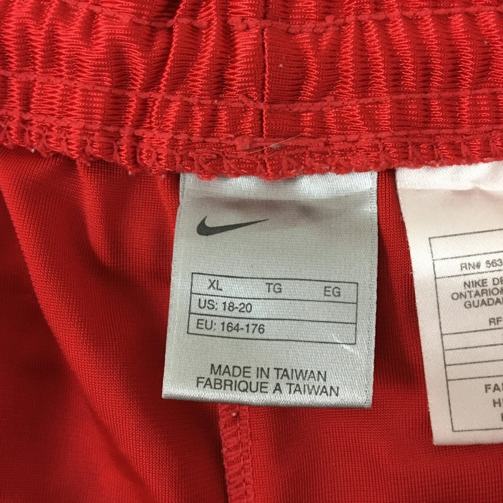 Fabric Wash: Medium Fabric Type: Blended Fabric Style: Athletic Department: Boys Country/Region of Manufacture: Thailand Performance/Activity: Basketball, Cross Training, Gym & Training Features: Comfort, Elastic Waist, Pockets, Stretch Size: XL Material: 100% Polyester, Polyester Garment Care: Machine Washable Pattern: Solid Fit: Athletic Brand: Nike Season: Fall, Spring, Summer, Winter Waist Size: 32 in Occasion: Activewear, Casual Theme: Logo, Sports Character: Boy Closure: Drawstring Inseam: 9 in Color: Red