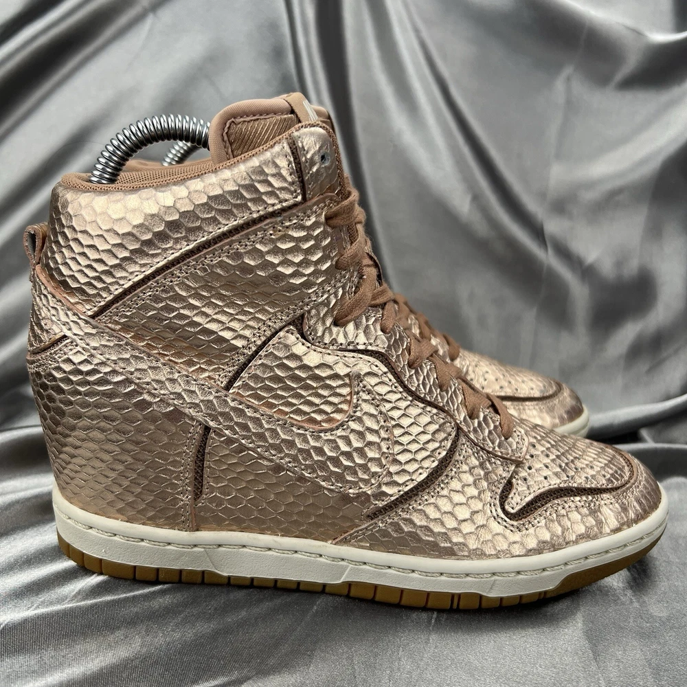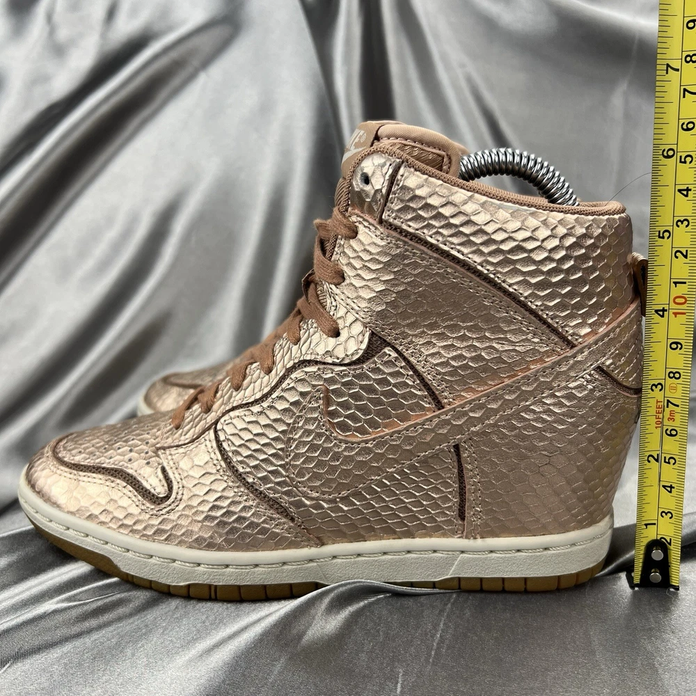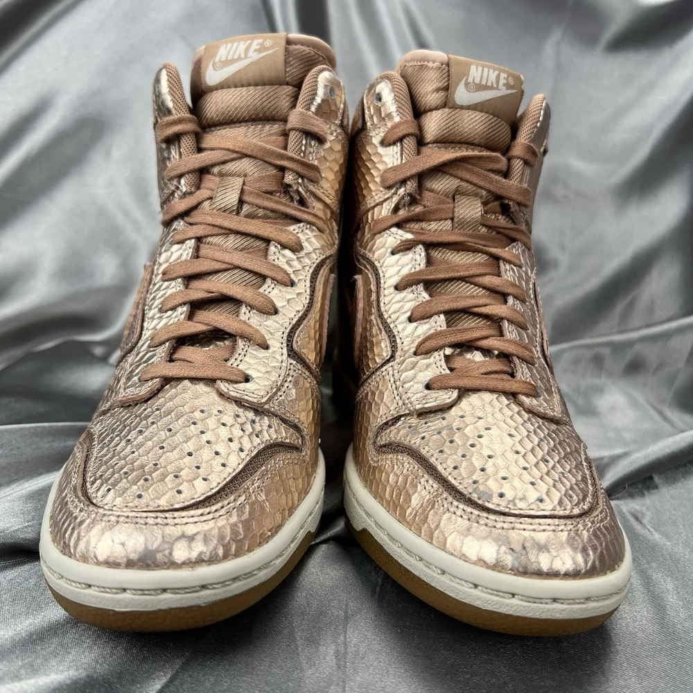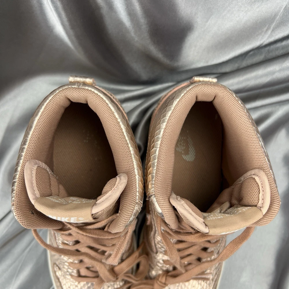 Nike Sky Hi Dunk Women’s Sz 6.5 Hidden Wedge Snake Metallic Rose Gold 644411-900 Athletic Activewear Streetwear Fashion Sneakers Shoes Condition shown in photos Please make sure to view and zoom in on all photos to determine the condition of the shoes. 🧼 Shoes have been cleaned and sanitized to meet the platform standards Questions? Want more pics? Send a DM 🙂 📬 Ships same day or within 24/hrs! 🥳 Full refunds will be given for returned items sent in original condition.