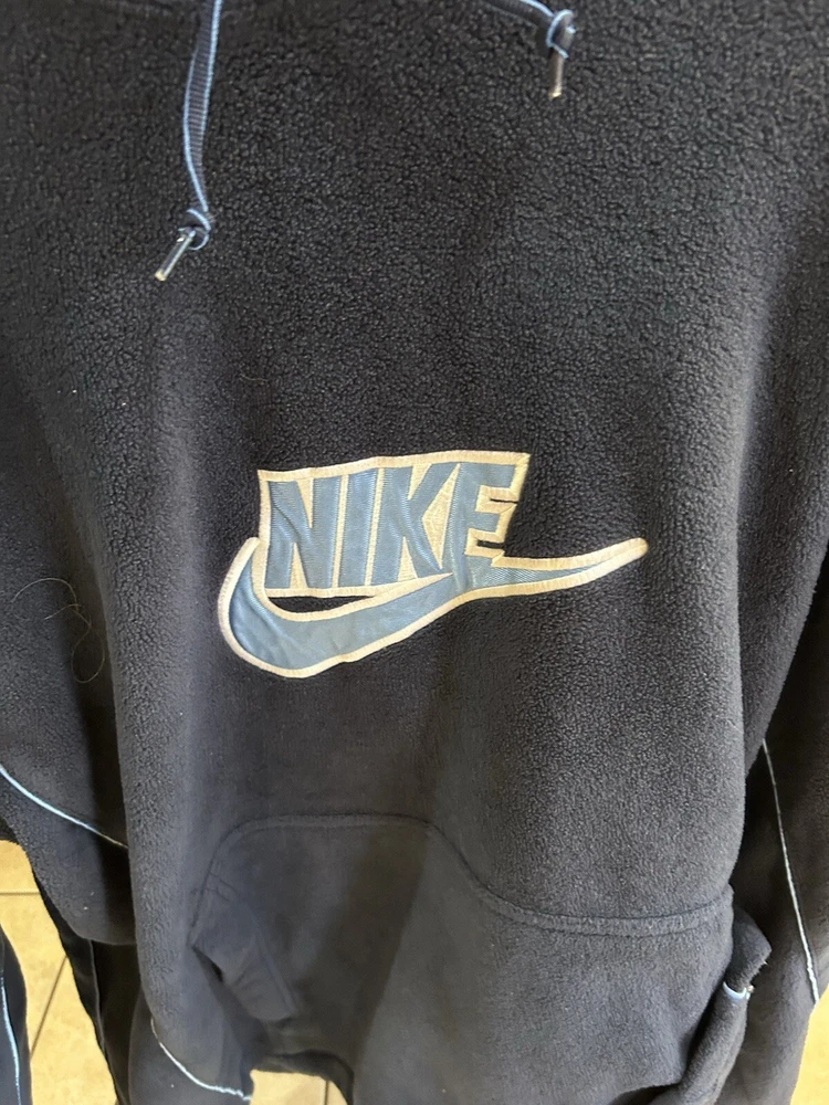 This Nike Spell-Out Fleece Pull Over in blue is a must-have for any Y2K enthusiast. The oversized, hooded design is perfect for all seasons and the embroidered accents add a touch of vintage charm. Made from high-quality fleece material, this sweater is both comfortable and stylish. With a crew neck and regular fit, this sweater is perfect for casual wear and basketball games alike. The solid pattern and blue color make it a versatile addition to any wardrobe. Don't miss out on this Y2K Heat piece from Nike.