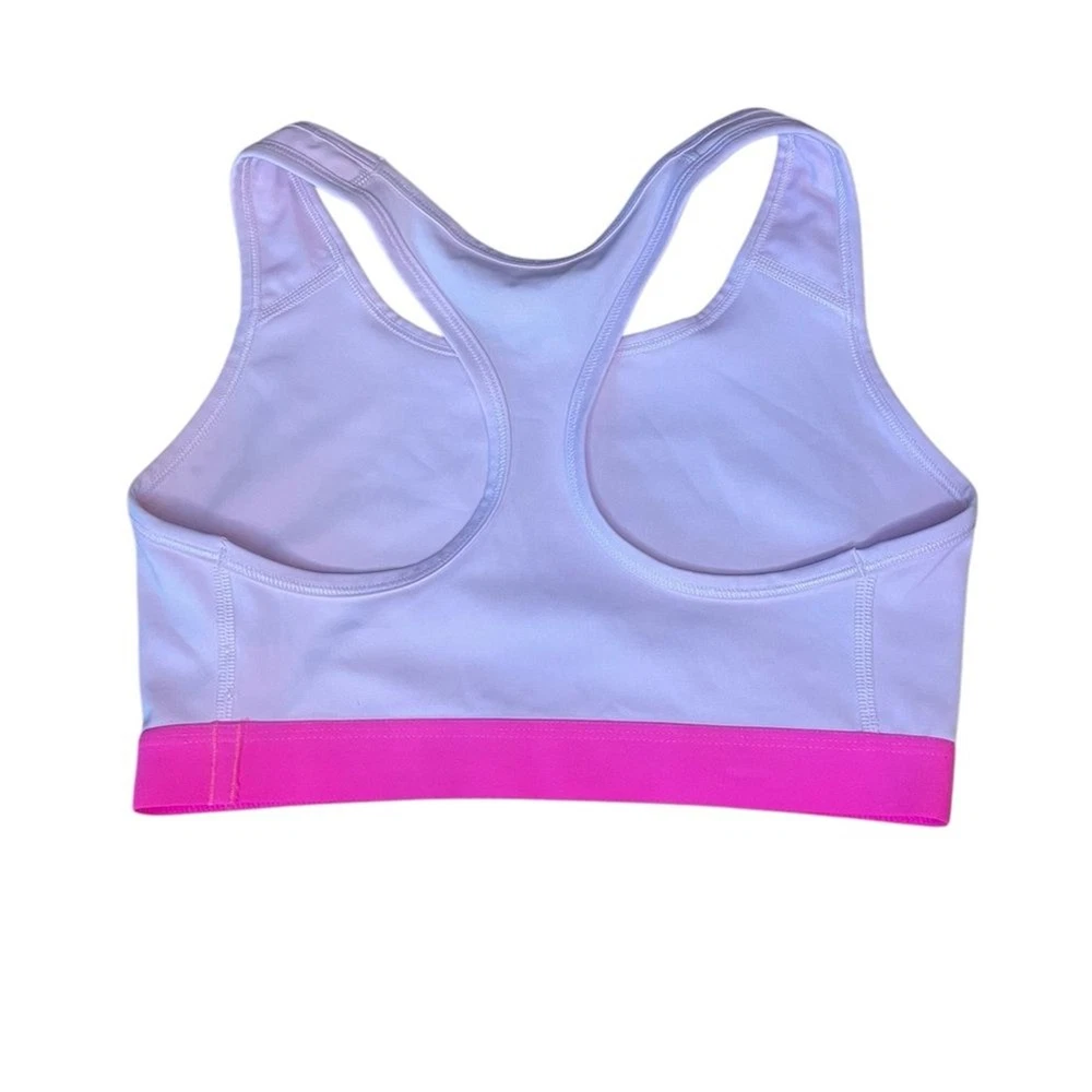 Nike Sports Bra Dri Fit Swoosh Medium Support Pink White Logo Womens Medium