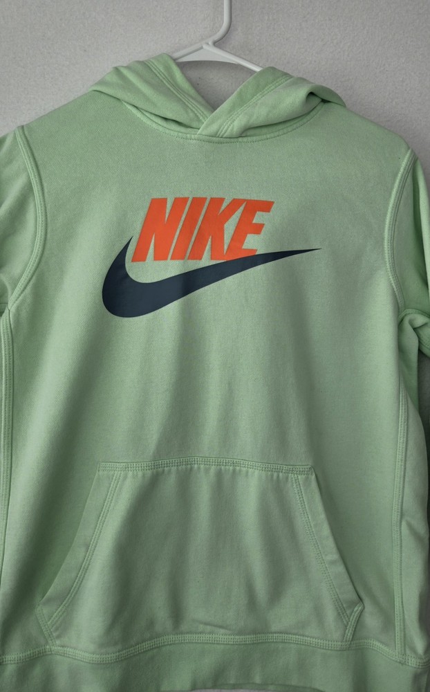 Nike Sportswear Club Fleece Big Kids' (Boys') Green Pullover Hoodie Size XL ***There are a couple of light stains. One on each sleeve by the wrist both on the back side. Then one on the hood. Please see attached photos. Please feel free to ask any questions you may have. Thank you for looking.