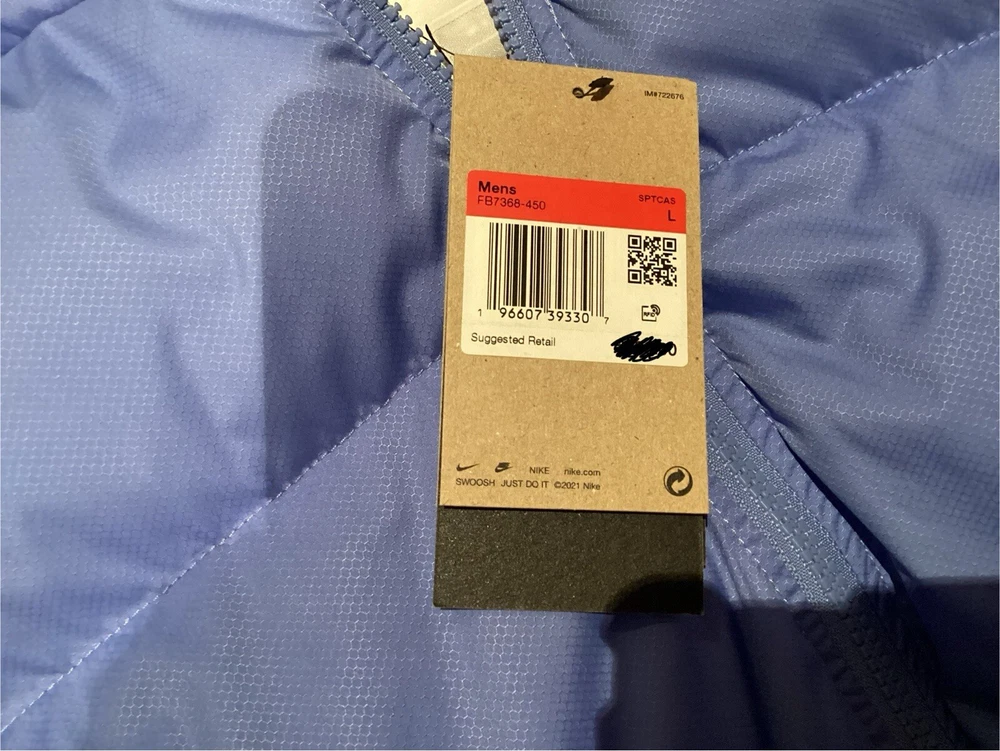 Nike Sportswear Club Puffer Jacket Polar Blue White FB7368-450 Men’s Size Large. Condition is New with tags. Shipped with USPS Ground Advantage.