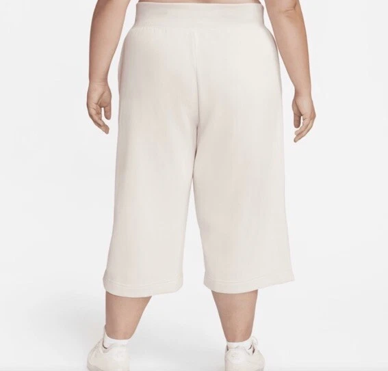 New Elevate your activewear game with these Nike Sportswear Phoenix Fleece Women's High-Waisted Cropped Sweatpants in size 3XL. The drawstring closure and wide-leg style ensure a comfortable and secure fit during any performance or activity, whether it be gym and training, walking, or running and jogging. The pants are made of a polyester and cotton blend with a fleece fabric type, making them perfect for any season, whether it be winter, summer, fall, or spring. These pants feature an oversized design, compression area in the waist, and pockets for added convenience. The white color and Nike logo make them a stylish addition to any athleisure outfit. Machine washable for easy care, these pants are a must-have for any active woman's wardrobe.