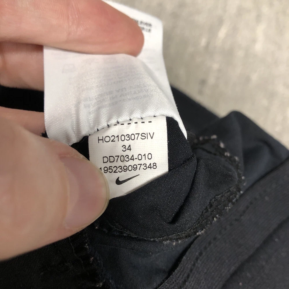 Country/Region of Manufacture: Vietnam Fit: Standard Fit UPC: 0195239097348 Performance/Activity: Athleisure Style: Activewear Pants Theme: Athleisure, Outdoor, Sports, Active, Athletic, Casual Leg Style: Tapered Occasion: Activewear Inseam: 26 in Product Line: Nike Sportswear MPN: DD7034-010 Color: Black Character: Nike Sportwear Brand: Nike Type: Pants Size: 34 Garment Care: Machine Washable Size Type: Regular Waist Size: 34 in Pattern: Solid Material: Cotton, Polyester, Spandex Fabric Type: Woven Closure: Zip Department: Men gtin13: 0195239097348 Features: Comfort, Easy Care, Lightweight, Pockets, Zip Pocket