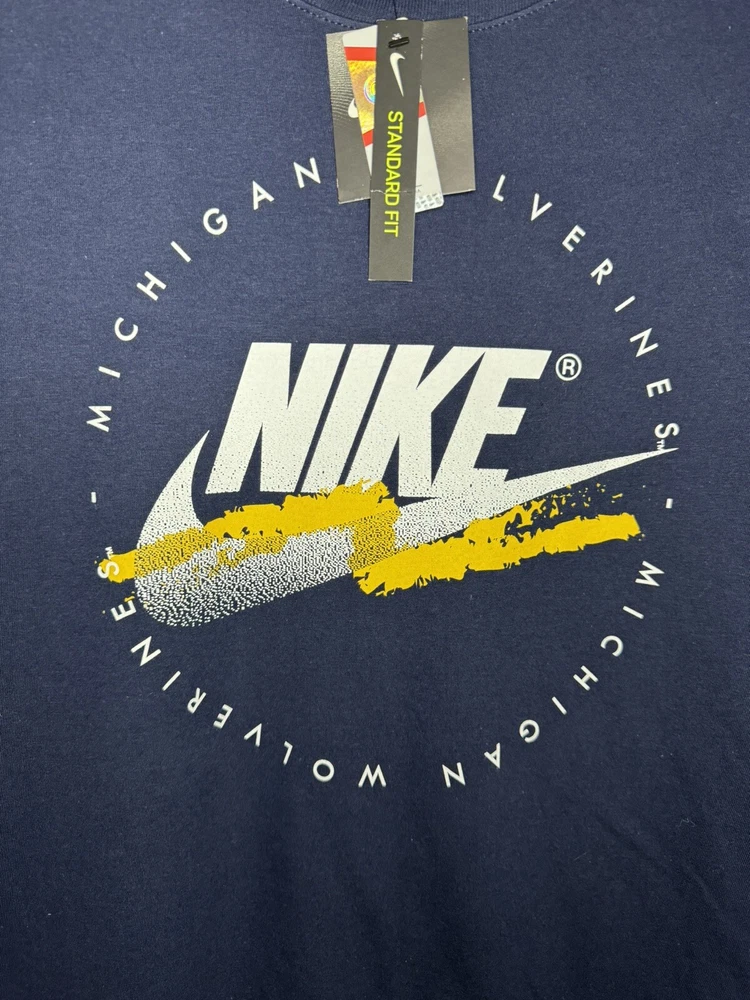Nike Standard Fit NCAA Michigan Wolverines Blue Mens Small T Shirt Nike Swoosh. Condition is New. Shipped with USPS Ground Advantage.