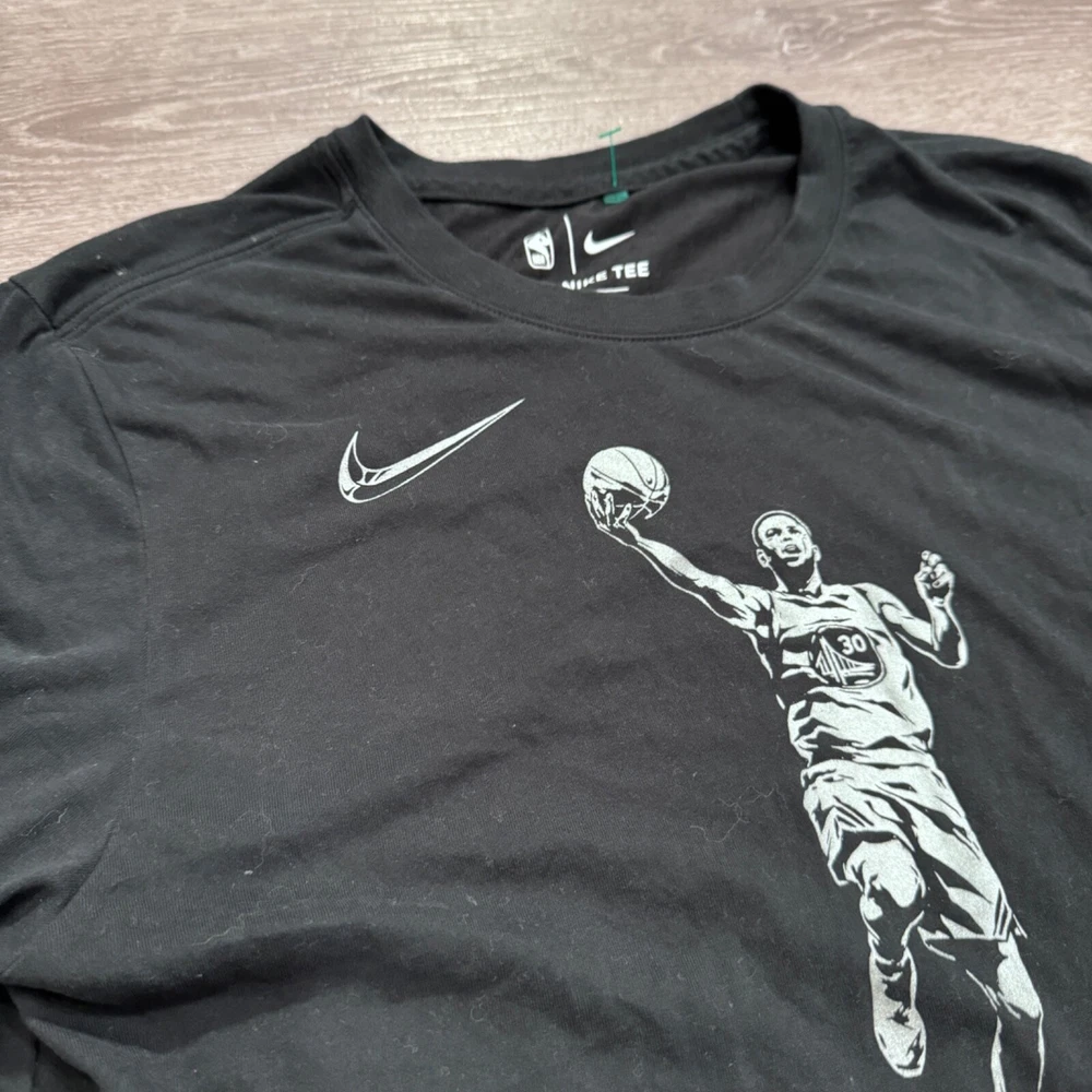 League: National Basketball Association (NBA) Size: L Team: Golden State Warriors Gender: Men Brand: Nike Color: Black Pre & Post Season: Regular Season Officially Licensed: Yes Product: Shirt Sport: Basketball Player: Stephen Curry