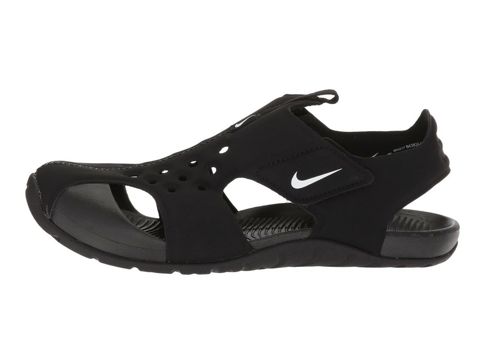201622 Nike Sunray Protect 2 (TD) Color - Black/White Little Boys Size 7 C Nike's stylish lightweight water sandals/sneakers/shoes are the perfect addition to any boys wardrobe! They are soft, flexible and will protect your child's toes. Soft synthetic leather uppers with contrast stitching details for durability. Lightweight phylon cushioned midsoles for all-day play. Equipped with dual hook-and-loop closures that opens on both sides for easy on and off. Toe bumpers offer additional protection! Their molded outsoles provide excellent traction and are non-marking and non-slip. Nike famous "Sweeps" located on the top of each water shoe and on the strap. Made to be worn in and out of the water and are perfect for pool, lake and ocean play! Nike protect 2's dry quickly. Price - $34.90 All Nikes' are brand new and come off the shelf of a children's retail shoe store. All water shoes will be tracked and shipped within 24 - 48 hours of receiving payment.
