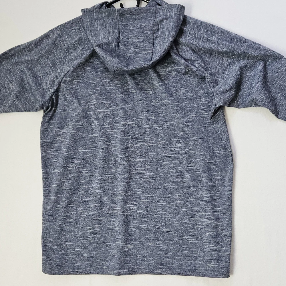 Nike Swim dri fit blue and white mix with hoodie long sleeve. Shirt is in excellent clean condition no holes or tears. Sz Medium measures flat 19" across shoulders 21" pit to pit 28" Length 23" sleeves