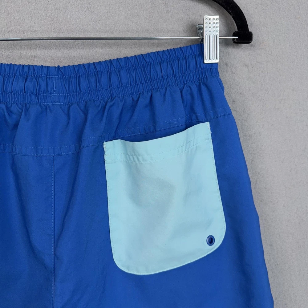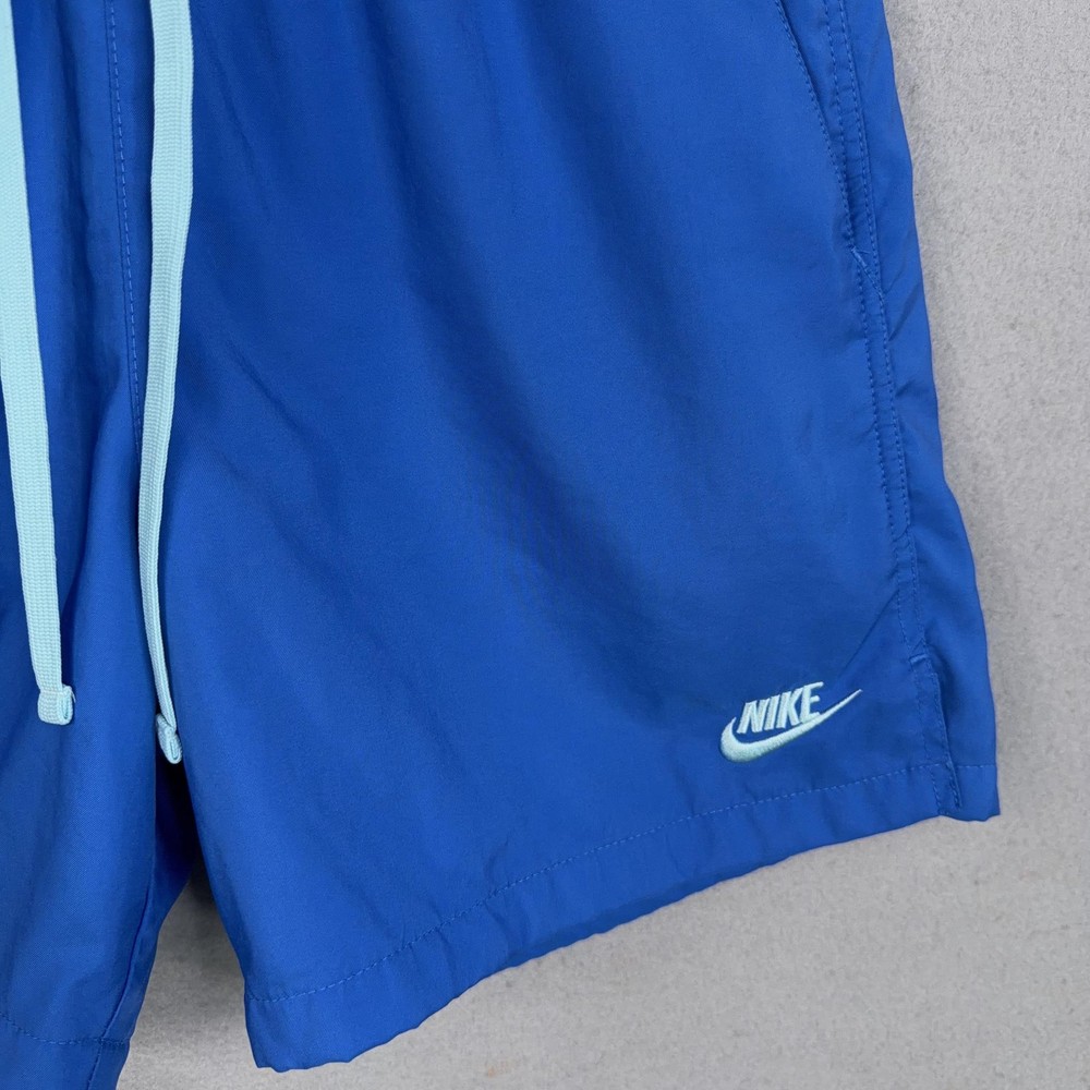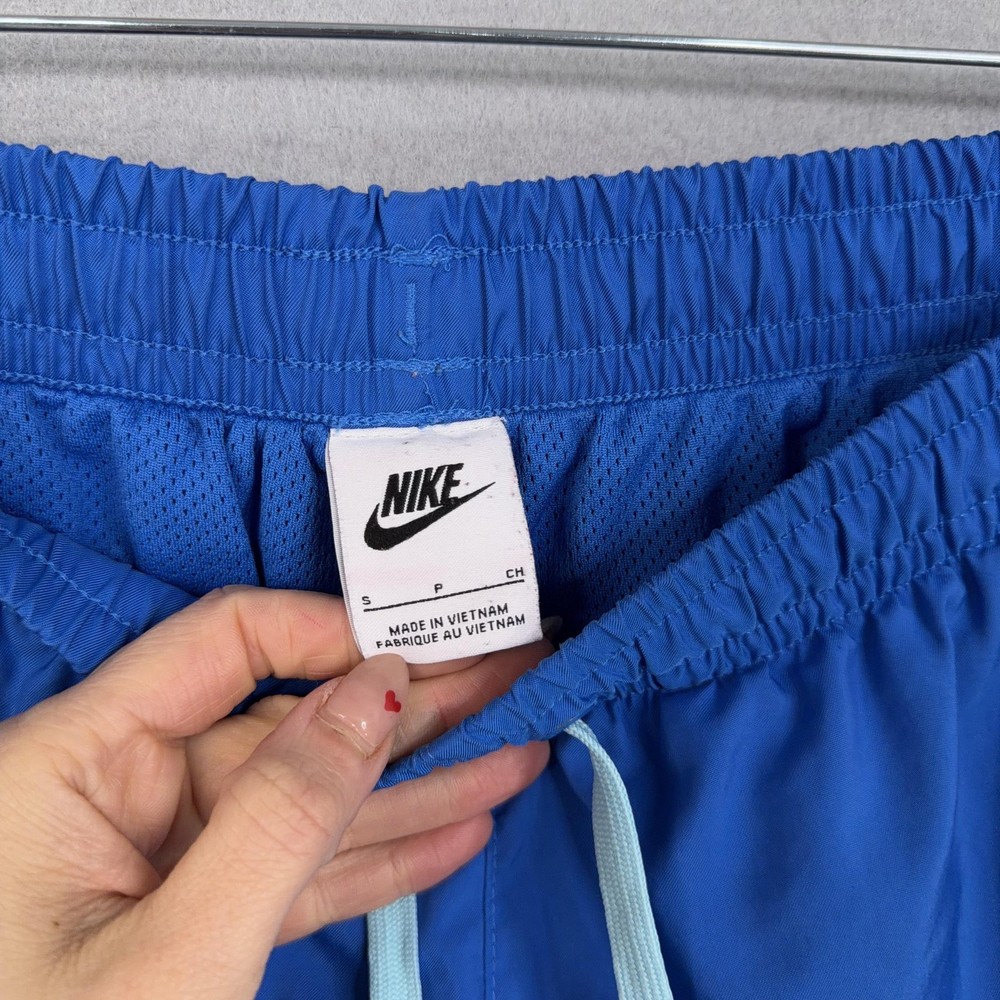 Nike Swim Shorts Mens Small Blue Mesh Lined Trunks Drawstring Back Pocket Pre-owned Nike swim shorts with light overall wear from prior use. Fabric, embroidery, and mesh lining are clean and intact with no holes, stains, or damage; elastic waistband, drawstring, and pockets are secure and functional. Shows mild wrinkling from storage; original retail tags and packaging are not included. Brand: Nike. Style: Mens swim shorts with elastic waist and built-in mesh lining. Color: Solid royal blue body with light blue contrast drawstring and back pocket. Size: Mens Small per interior waist tag labeled S. Material: Shell and lining 100% polyester per interior content tag. Fabric type: Lightweight woven polyester with breathable mesh interior brief for comfort in and out of the water. Details: Elastic waistband with external drawstring, side slash hand pockets, and single rear patch pocket with drainage grommet. Features: Above-the-knee length, built-in mesh liner, quick-drying fabric, adjustable drawcord waist, and functional pockets for secure storage while swimming or at the beach. Branding and logos: Embroidered Nike wordmark and Swoosh logo at the front left hem and woven Nike waist label. Country of origin: Made in Vietnam as indicated on interior tags. Tag information: Interior tags list 100% polyester shell and lining, RN# 56323, CA# 05553, care instructions, and Nike style code DA5878-403. Additional identifiers: UPC: 148670214906; season code FA2020SVE printed on interior tag. Intended use: Designed for recreational swimming, pool days, beach trips, and casual warm-weather wear. Special notes: Classic solid-color Nike swim trunks with contrast back pocket for a simple athletic look. 25562 Measurements: Previous washings may change sizing on the tag. Refer to photos above for all measurements. Compare our measurements to one of your favorite garments. Measurements are approximate. All items are bagged and sealed after being photographed, then stored in a smoke free environment. Washed per eBay standards. I carefully package and ship daily. Contact me with any questions. Thanks