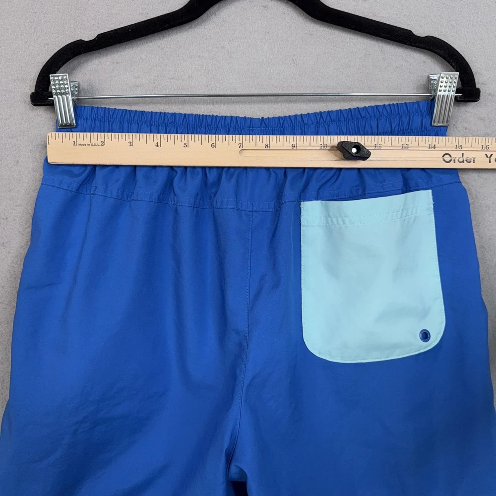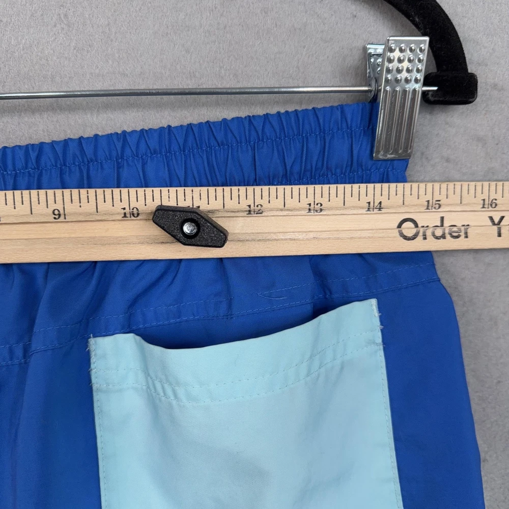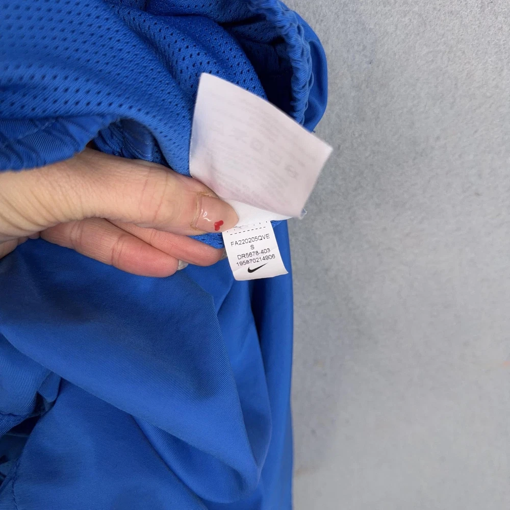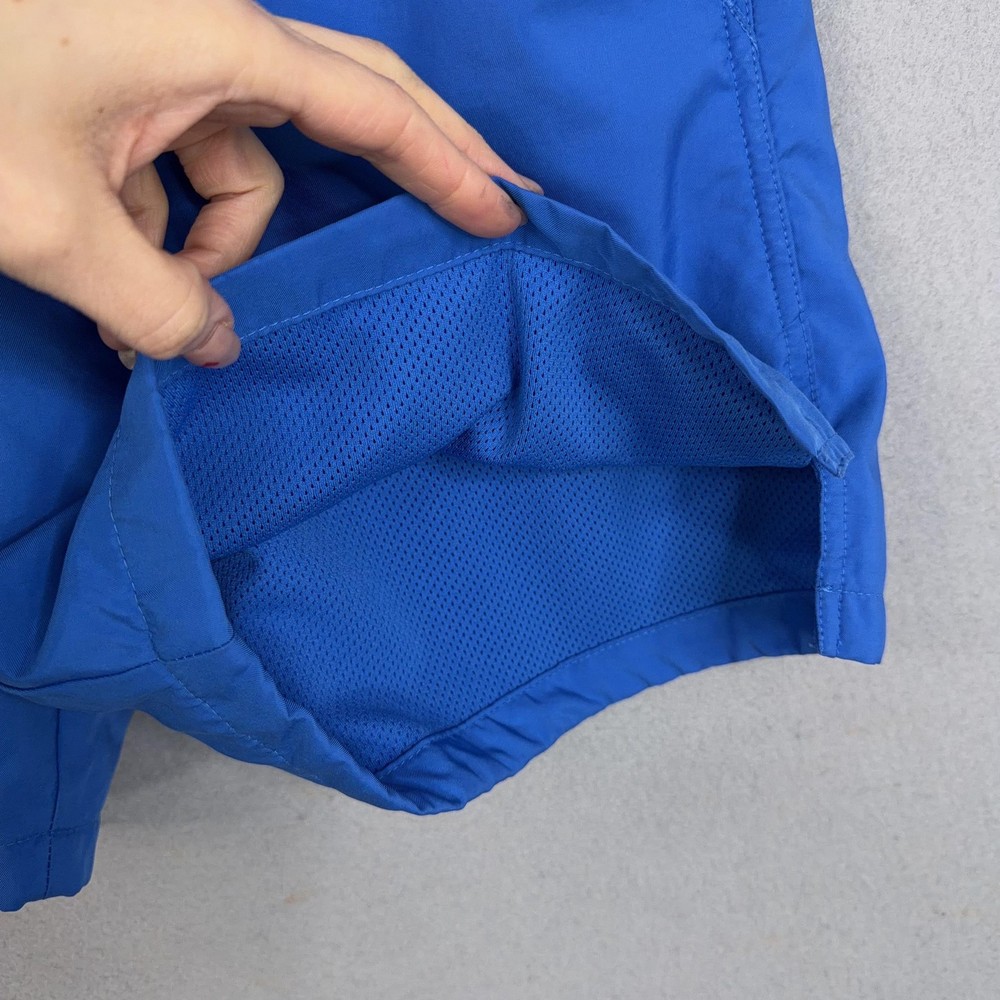 Nike Swim Shorts Mens Small Blue Mesh Lined Trunks Drawstring Back Pocket Pre-owned Nike swim shorts with light overall wear from prior use. Fabric, embroidery, and mesh lining are clean and intact with no holes, stains, or damage; elastic waistband, drawstring, and pockets are secure and functional. Shows mild wrinkling from storage; original retail tags and packaging are not included. Brand: Nike. Style: Mens swim shorts with elastic waist and built-in mesh lining. Color: Solid royal blue body with light blue contrast drawstring and back pocket. Size: Mens Small per interior waist tag labeled S. Material: Shell and lining 100% polyester per interior content tag. Fabric type: Lightweight woven polyester with breathable mesh interior brief for comfort in and out of the water. Details: Elastic waistband with external drawstring, side slash hand pockets, and single rear patch pocket with drainage grommet. Features: Above-the-knee length, built-in mesh liner, quick-drying fabric, adjustable drawcord waist, and functional pockets for secure storage while swimming or at the beach. Branding and logos: Embroidered Nike wordmark and Swoosh logo at the front left hem and woven Nike waist label. Country of origin: Made in Vietnam as indicated on interior tags. Tag information: Interior tags list 100% polyester shell and lining, RN# 56323, CA# 05553, care instructions, and Nike style code DA5878-403. Additional identifiers: UPC: 148670214906; season code FA2020SVE printed on interior tag. Intended use: Designed for recreational swimming, pool days, beach trips, and casual warm-weather wear. Special notes: Classic solid-color Nike swim trunks with contrast back pocket for a simple athletic look. 25562 Measurements: Previous washings may change sizing on the tag. Refer to photos above for all measurements. Compare our measurements to one of your favorite garments. Measurements are approximate. All items are bagged and sealed after being photographed, then stored in a smoke free environment. Washed per eBay standards. I carefully package and ship daily. Contact me with any questions. Thanks