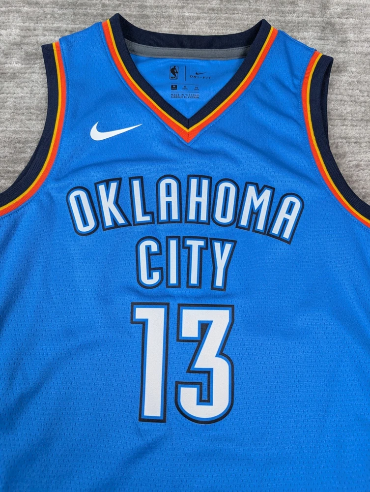 Product:JerseyTeam:Oklahoma City ThunderBrand:NikeLeague:National Basketball Association (NBA)Size:MSport:BasketballGender:BoysColor:BlueOfficially Licensed:YesPlayer:Paul George