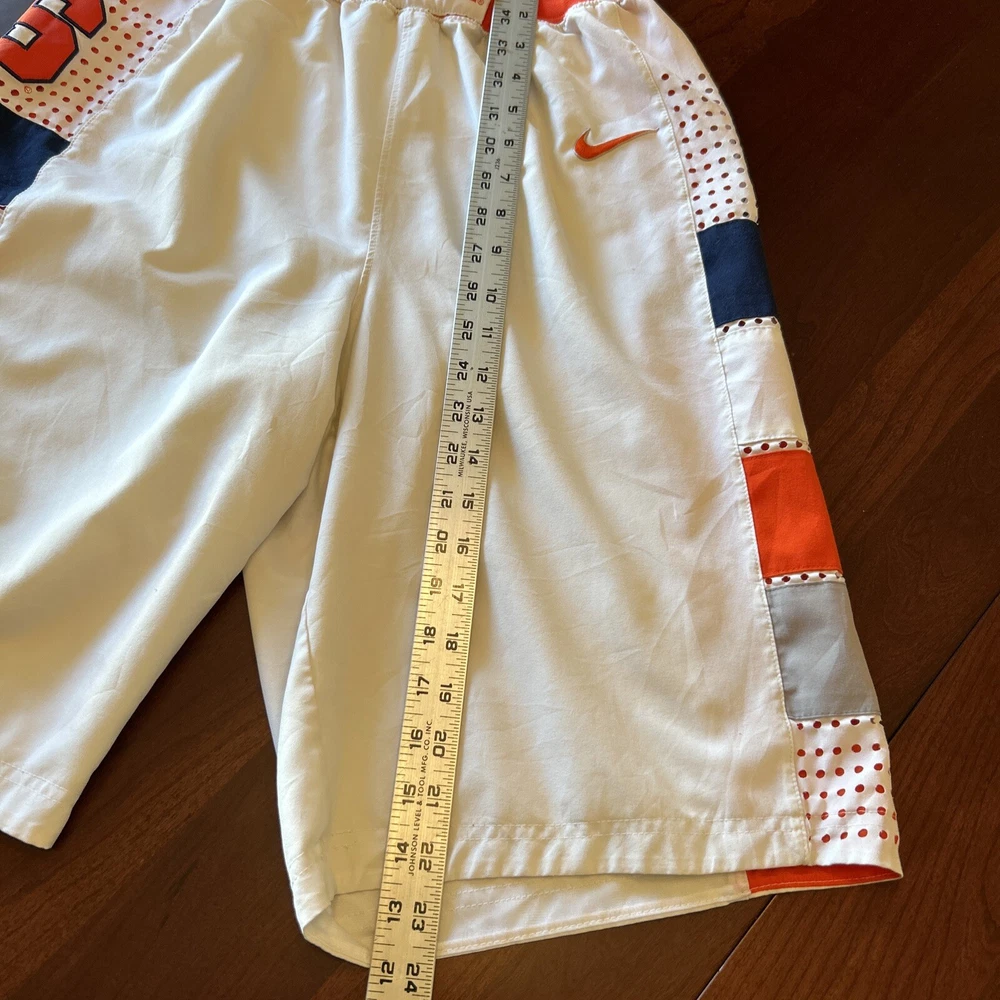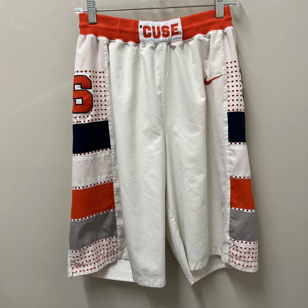 Nike Syracuse Mens Shorts S Orangemen College NCAA White Basketball Show your support for the Syracuse Orange with these Nike Men's Shorts in size S. Perfect for basketball fans, these shorts are designed for comfort and style. Made with high-quality materials, they are durable and will last you for many seasons to come. The white color and Nike branding make them a great addition to your collection of fan apparel. Whether you're at the game or out and about, these shorts will surely make you stand out. Get your hands on them now and show your love for the Syracuse Orange!