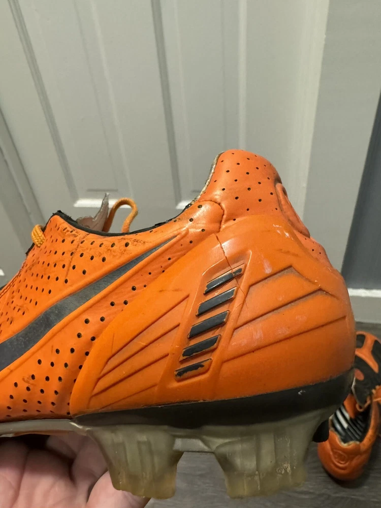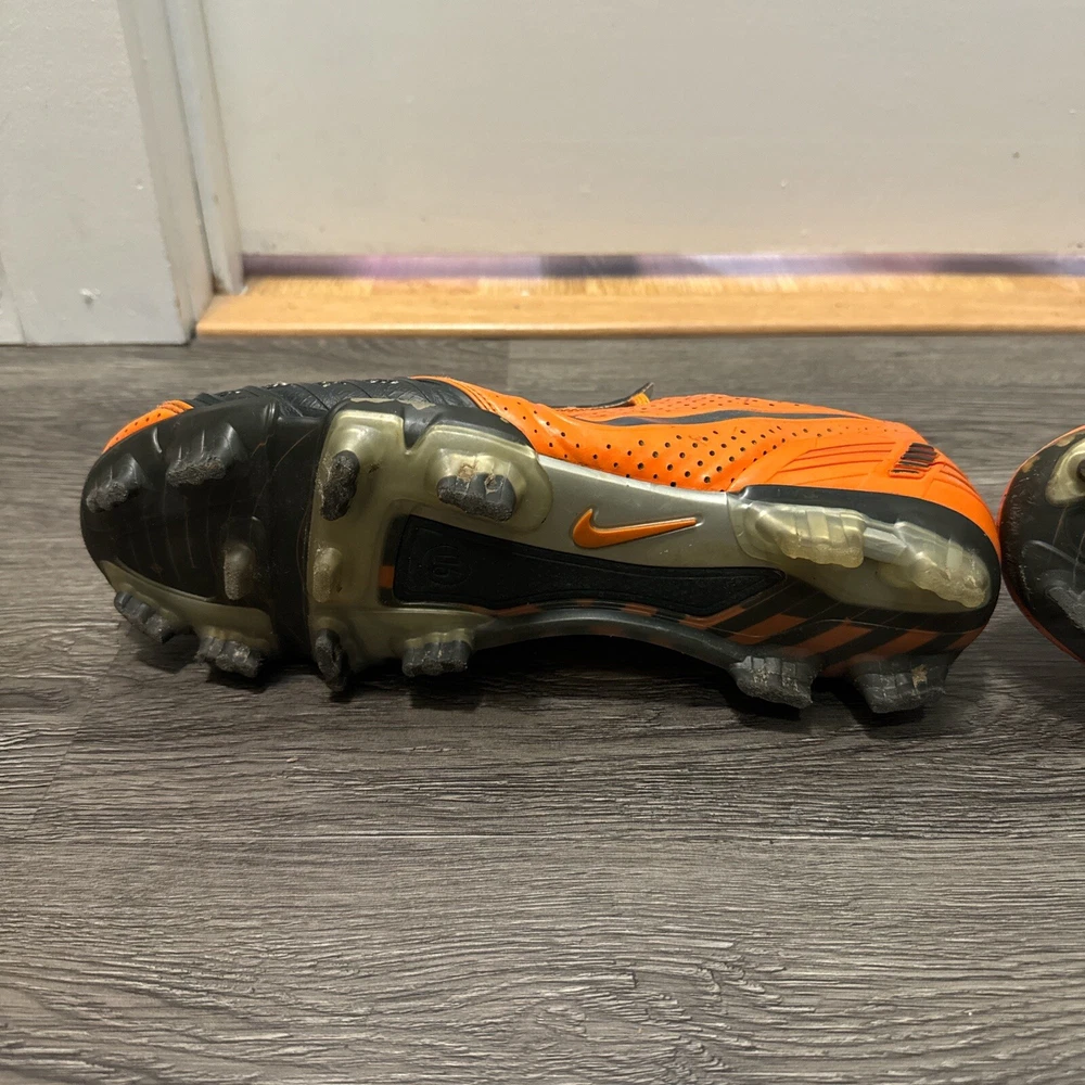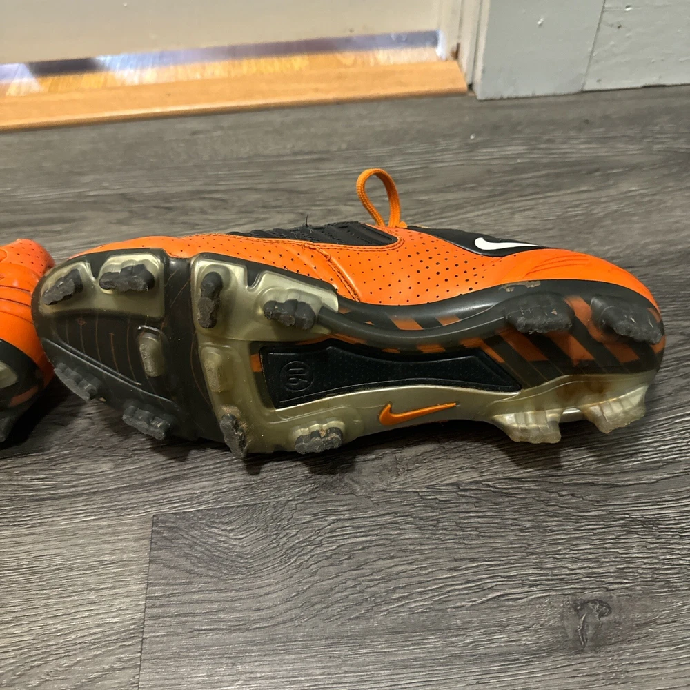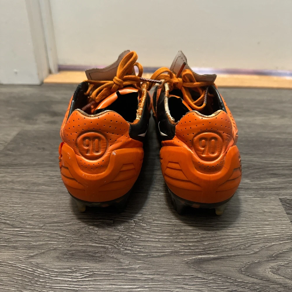Nike T90 Laser Football Soccer Boots Cleats Orange Blaze US Size 11 2009 Rare Extremely Rare 2009 Nike T90 Laser Orange Blaze Soccer Cleats Boots Used Condition, exterior soft and in good used shape, some cracking on outside plastic part. Interior by heel has peeling and wear like most used T90 laser Cleats. Bottoms are in great shape Priced Cheap for Quick Sale #nike #cleats