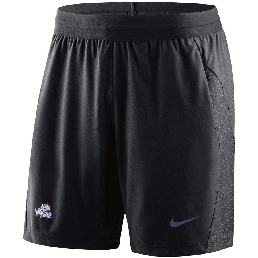 TCU horned frogs Shorts Brand: Nike Dri-FIT technology wicks away moisture Elastic waistband with drawstring Material: 100% Polyester Officially licensed Condition :New