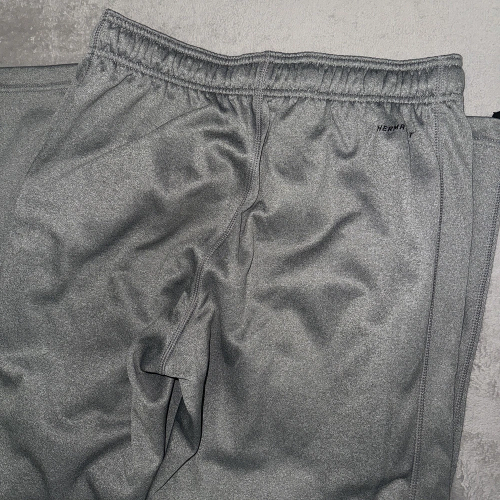Get ready for your workout with these Nike THERMA-FIT Training sweatpants. The gray pants feature an elastic waistband, drawstring closure, and straight leg style for a relaxed fit. Made of polyester and lined with fleece, these pants are perfect for gym and training activities, including crossfit, track and field, running, and jogging. Other features include pockets, moisture wicking, breathability, and thermal insulation. The Nike logo on the pants adds a sporty touch. These pants are size S with a waist size of 31 inches and inseam length of 33 inches. Ideal for men who want to perform their best during their workouts, these Nike pants offer comfort and style.