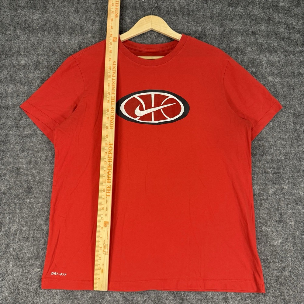 • Size: L / Large (Mens) • Condition: Good – light wear, no major flaws • Material: Polyester blend (Dri-Fit performance fabric) • Made in Mexico • Features: Short sleeve, crewneck, basketball logo graphic, moisture-wicking Fast handling – ships out in 1 business day Measurements are in photos. Sizes may vary, so we recommend measuring a similar item you own and comparing with measurements above. Measurements are approximate. Thank you!