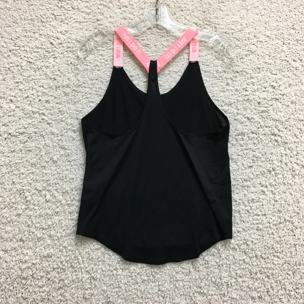 Style: Basic Seller Notes: “Good Used Condition. Please, See Pictures for Full Condition and Measurements.” Country/Region of Manufacture: Thailand Garment Care: Machine Washable Neckline: Round Neck Material: Polyester Pattern: Solid Department: Women Sleeve Length: Sleeveless Strap Type: Racerback Performance/Activity: Gym & Training, Running & Jogging, Walking Color: Black Season: Fall, Spring, Summer Model: Nike Dri-Fit Brand: Nike Type: Tank Fit: Athletic Fabric Type: Blended Fabric Product Line: Nike Dri-FIT Fabric Wash: Dark Size Type: Regular Features: Breathable, Collarless, Lightweight, Stretch Theme: Classic, Logo, Sports Occasion: Activewear, Casual Closure: Pullover Size: S