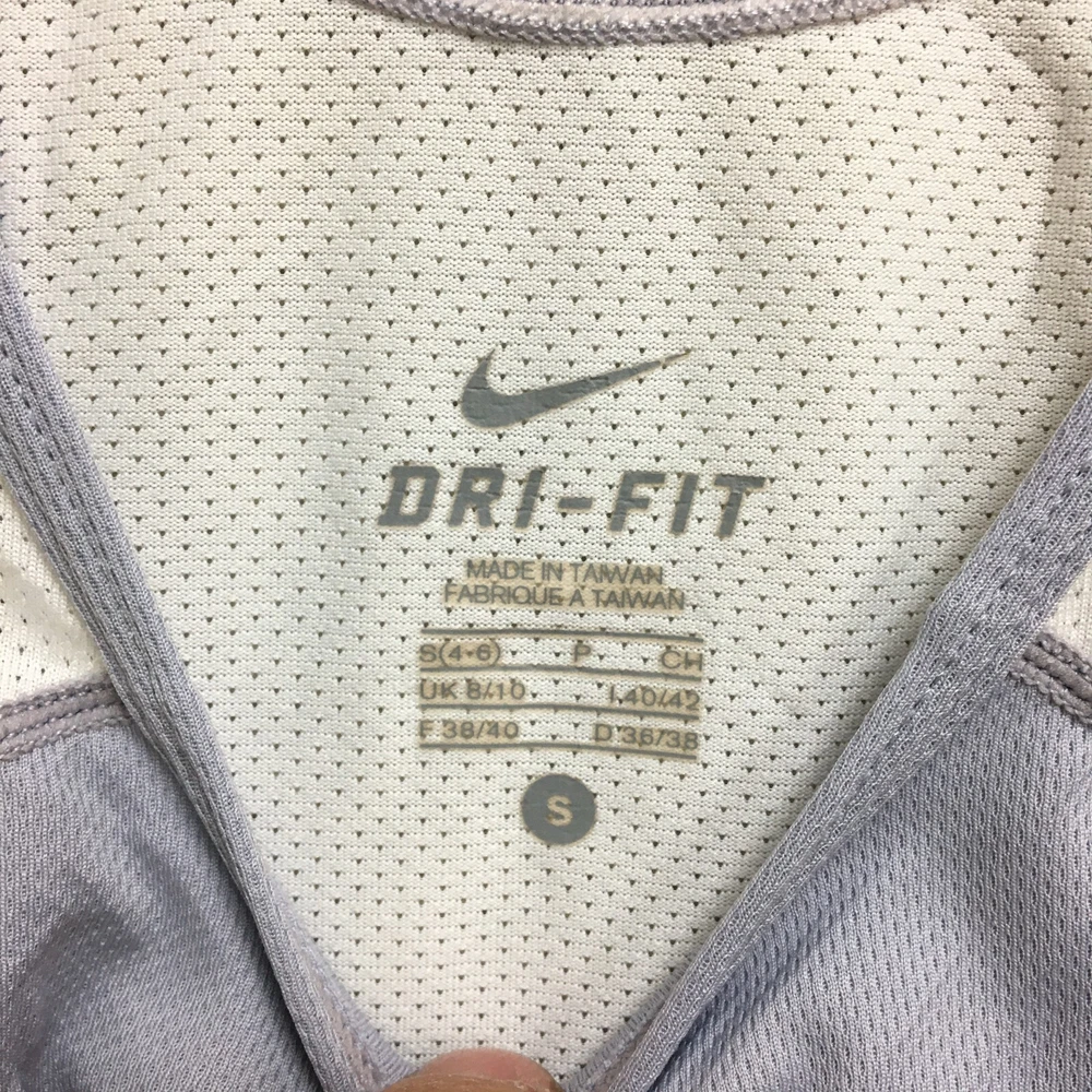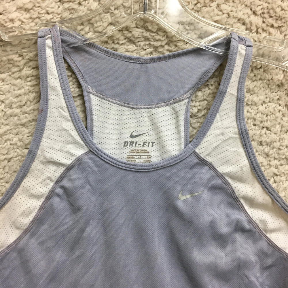 Sleeve Length: Sleeveless Size Type: Regular Type: Tank Department: Women Theme: Logo Style: Basic Product Line: Nike Dri-FIT Fabric Wash: Light Closure: Pullover Performance/Activity: Gym & Training, Running & Jogging, Walking Pattern: Solid Fabric Type: Blended Fabric Garment Care: Machine Washable Season: Fall, Spring, Summer, Winter Features: All Seasons, Easy Care, Stretch Occasion: Activewear, Casual Color: Purple Material: Polyester Size: S Fit: Athletic Neckline: Round Neck Model: Nike Dri-Fit Brand: Nike Country/Region of Manufacture: Taiwan Strap Type: Racerback
