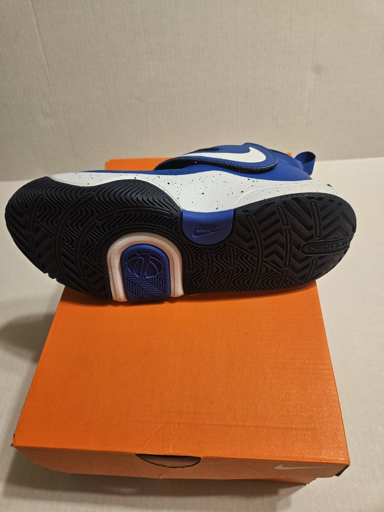 The Nike Team Hustle D11 Youth Size 5Y Royal Blue Basketball Shoes (DV8996-400) are a stylish and functional option for young basketball players. With a round toe shape, lace-up closure, and mid-top shoe shaft style, these shoes offer a comfortable fit for active boys. Made with a blended fabric upper and rubber outsole, they provide durability and performance on the court. The breathable design, cushioned insole, and standard shoe width make them suitable for a variety of activities beyond basketball, such as running, jogging, and cross training. Featuring the iconic Nike logo and basketball theme, these shoes are a solid choice for young athletes.