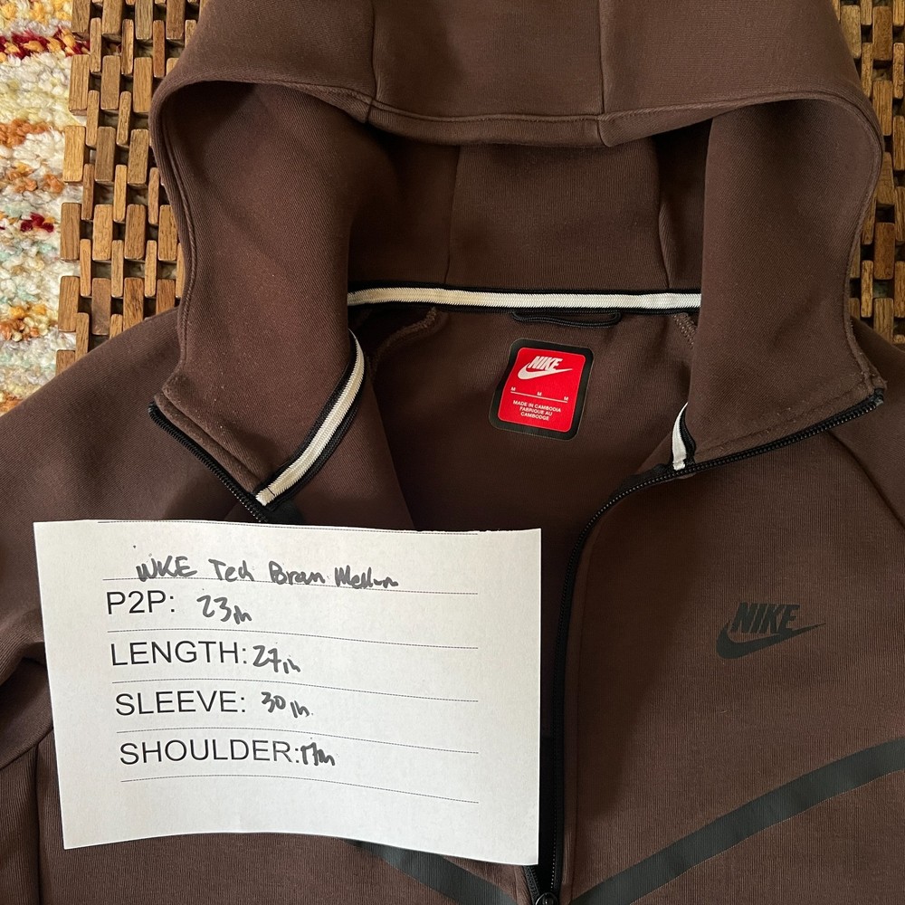 The Nike Tech Fleece Hoodie Hoody Jacket Sweatshirt in Brown Black is a stylish and comfortable addition to any man's wardrobe. Made with cotton fleece fabric, this hoodie features long sleeves and a full zip closure for easy wear. With its regular fit and hooded design, it is perfect for sports and gym activities in the fall, winter, and spring seasons. The Nike brand ensures quality and the color combination of brown and black adds a trendy touch to the classic hoodie style. Perfect for staying warm and fashionable during your active lifestyle.