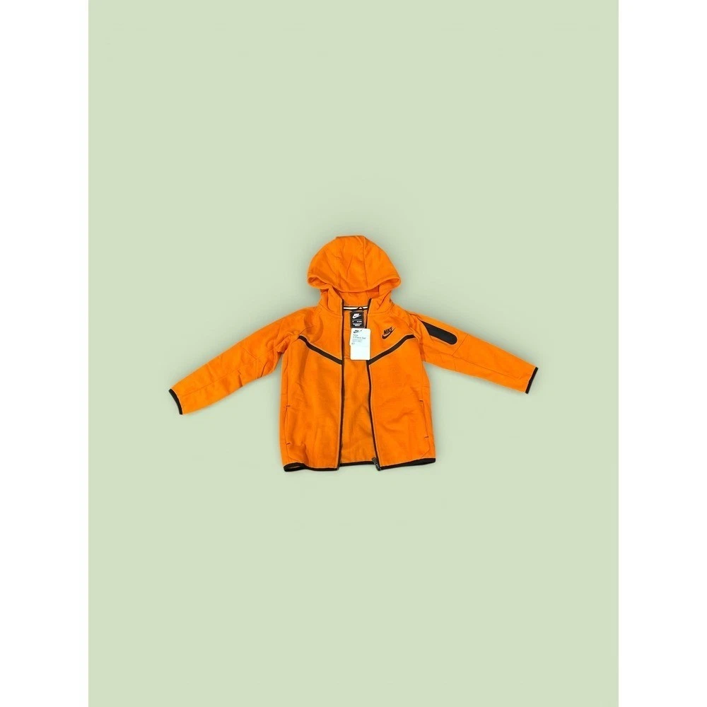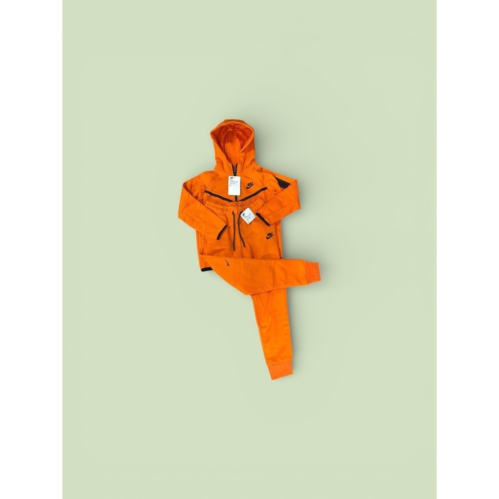(Pictures above are for authentication, you will receive the exact size listed on item details. FAST SHIPPING !!!) Ignite your child's active style with this vibrant Nike Tech Fleece tracksuit set. The eye-catching orange hue radiates energy, while the signature Tech Fleece fabric provides lightweight warmth and superior comfort for all-day wear. The full-zip hoodie features a classic design with zippered pockets for secure storage, and the matching joggers boast a comfortable fit with a drawstring waist and cuffed ankles to keep everything in place. Perfect for playground adventures, school days, or casual outings, this set ensures your little one stays comfortable and looks effortlessly cool.