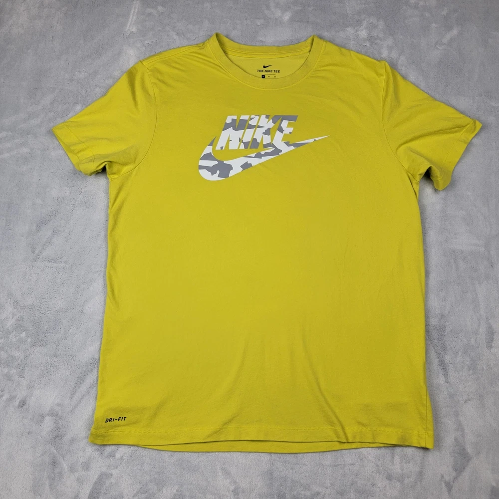 Nike Tee Shirt Mens XL Yellow Camouflage Logo Dri Fit Short Sleeve Athleisure Good Looking Shirt. Please see photo for condition, style, color, and preowned wear shown in picture. Thanks for Looking Fast Shipping