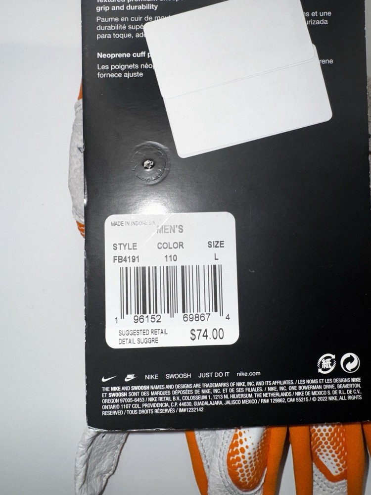 Nike Tennessee Volunteers Team Issue Alpha Elite Batting Gloves FB4191-110 L