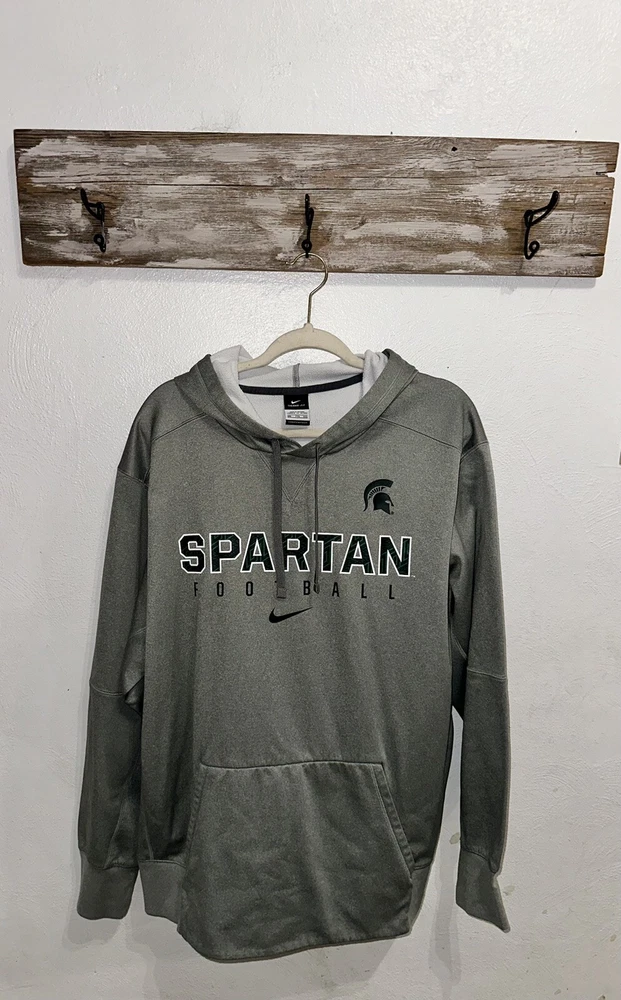 Nike Therma Fit Michigan State Spartans Pullover Hoodie Mens XXL Gray Football. Condition is Used. Shipped with USPS Ground Advantage.