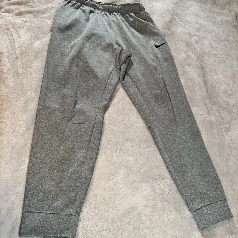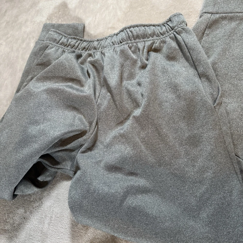 Elevate your activewear game with these Nike Therma Tapered Fleece Lined Training Pants in Gray. Designed for comfort and performance, these pants feature an elastic waistband, drawstring closure, and tapered leg style. They are perfect for gym and cross-training, running, and jogging. Made with high-quality fleece fabric, these pants are machine washable and easy to maintain. They come in a size M with a waist size of 30 inches and an inseam of 27 inches. The Nike logo adds a touch of style to these Athleisure-themed sweatpants, which are suitable for all seasons.