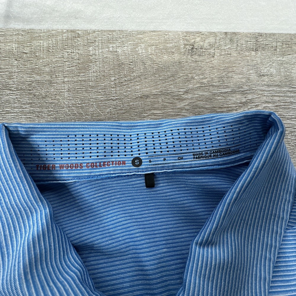 Nike Tiger Woods Collection Men's Size S Blue Striped Dri-FIT Golf Polo Shirt