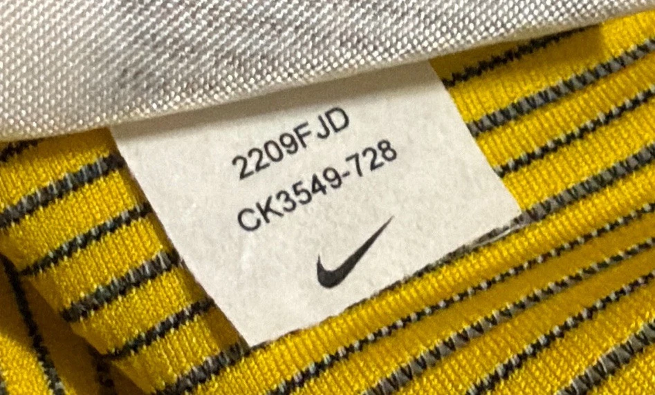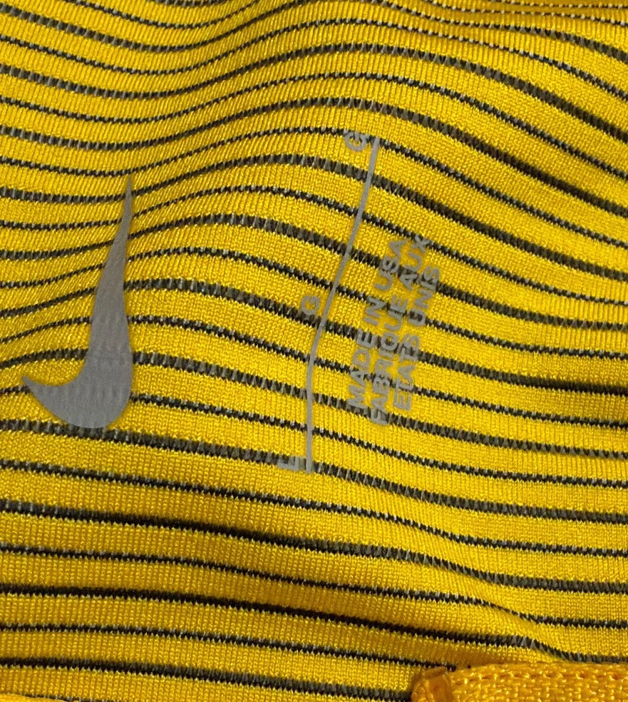 Crafted for athletes and active individuals, the Nike Pro Elite Jersey is a prime choice for those who value performance and style. The Men's size large jersey features a vibrant yellow hue, complemented by the classic Nike swoosh, and is designed with a 1/2 zip closure for easy on and off. The long sleeves and breathable fabric make it an ideal pick for both spring and summer seasons, ensuring you stay cool and comfortable during your runs or soccer practice. The jersey is part of the Nike Pro Elite product line, recognized for its quality and durability. It's fashioned from polyester and has a medium fabric wash, offering both versatility and longevity. With its solid pattern and athletic fit, this jersey is a functional yet fashionable addition to any activewear collection. Whether you're jogging through the park or sprinting on the field, this jersey is tailored to support your active lifestyle.