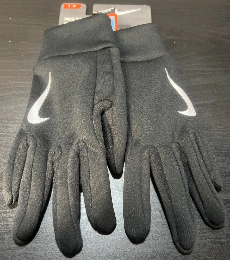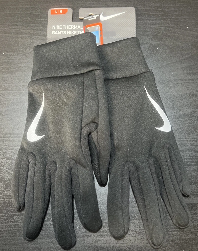 Stay warm and stylish with these Nike Unisex Thermal Be Warm Touch Screen Running Gloves. These gloves are perfect for outdoor activities such as walking and running during the winter and fall seasons. The black reflective design adds a touch of style to your activewear or casual look. Made with polyester material, these gloves are lightweight and comfortable. They also feature touchscreen compatibility, allowing you to use your phone without having to take off your gloves. With a warm glove warmth, your hands will stay cozy and comfortable throughout your outdoor activities. Get ready to tackle the elements and stay warm with these Nike running gloves.
