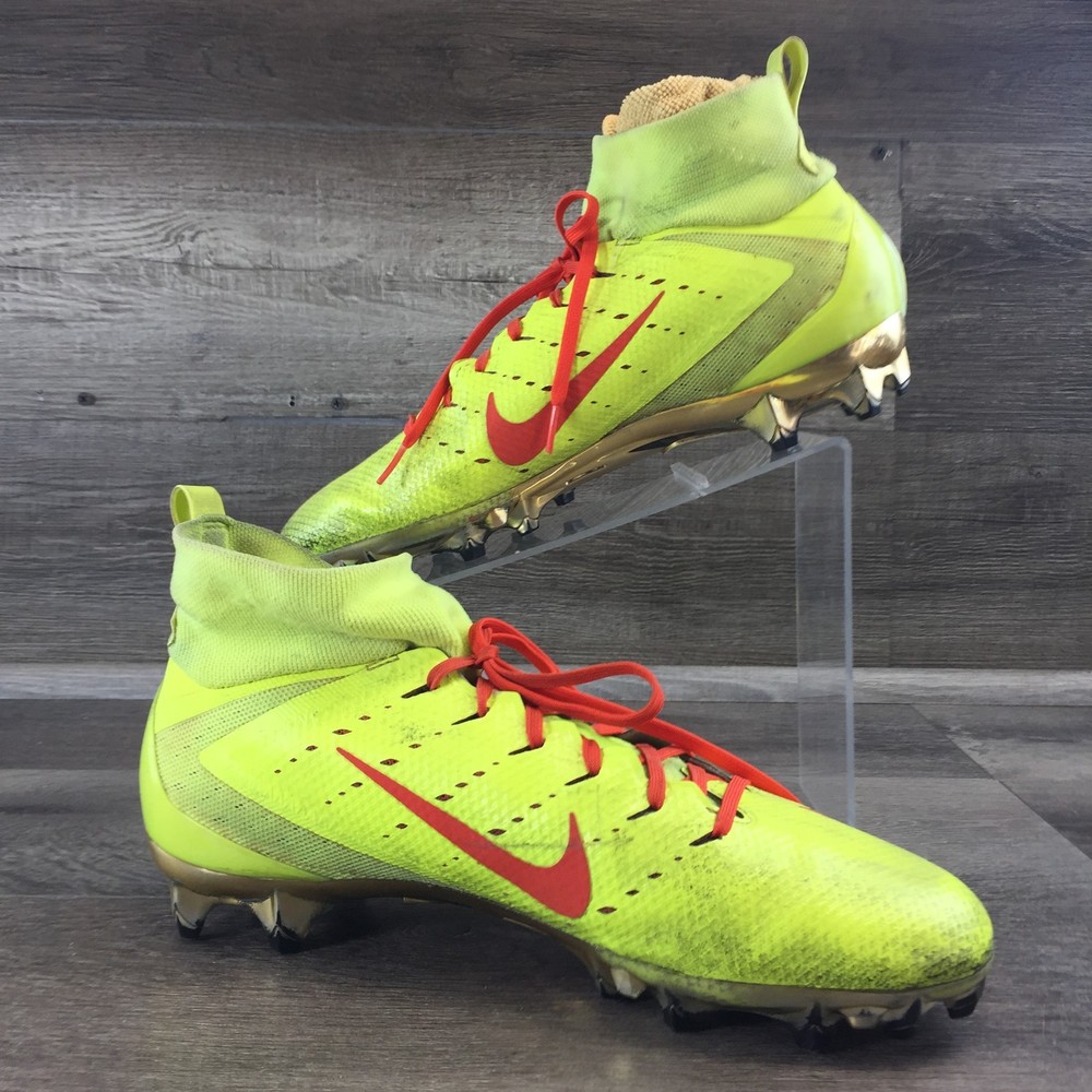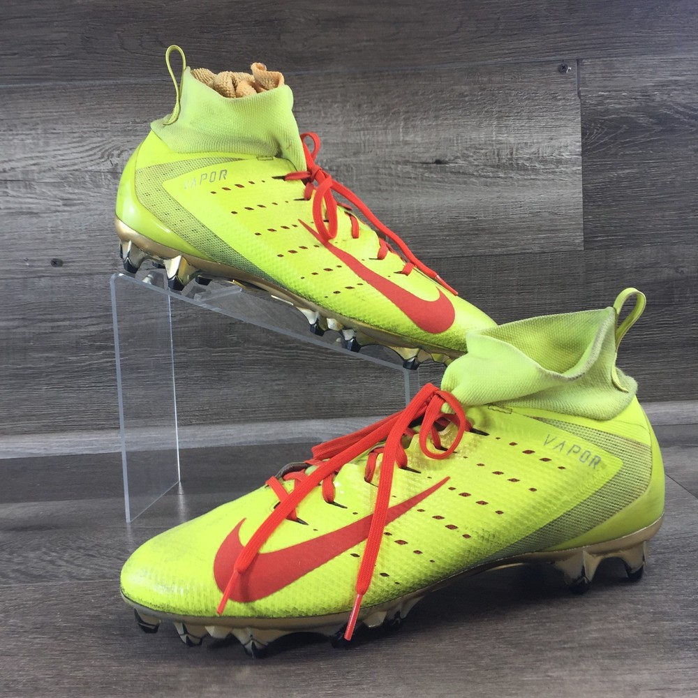 Nike Vapor Untouchable Pro 3 Elite Cleats Volt Green Red Gold Bottom Size 11.5 Product Details: Condition: Pre-Owned in Fair Condition. These shoes have been worn and show stains from use. The mode of this show is AR1864-991. These shoes where customized for college football player. (Please see pictures for condition and any imperfections also for Reference and Size) Stored in a Non Smoking Home Shipping: I ship daily Monday thru Friday so expect a quick delivery Ships from California, USA Fast Shipping Contact us for any custom orders "All items pictured are included. Please take another look at pictures to view what you are purchasing." Thank you for checking out our listing. Please visit my eBay store to find harder to find, and unique items. To View More Items from our Store, Click our Direct Link to our eBay Store Below: The West Coast Reseller Ebay Store