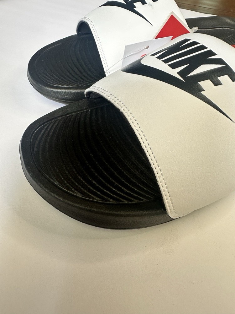 The Nike Victori One Men's Slides in White/White, Size 10 are a stylish and comfortable choice for men. Featuring a solid white color with a canvas lining, these slides are perfect for casual wear. The rubber outsole provides durability and traction, making them ideal for everyday use. The Nike Air product line ensures high quality and a fashionable design, making these slides a versatile addition to any man's shoe collection.