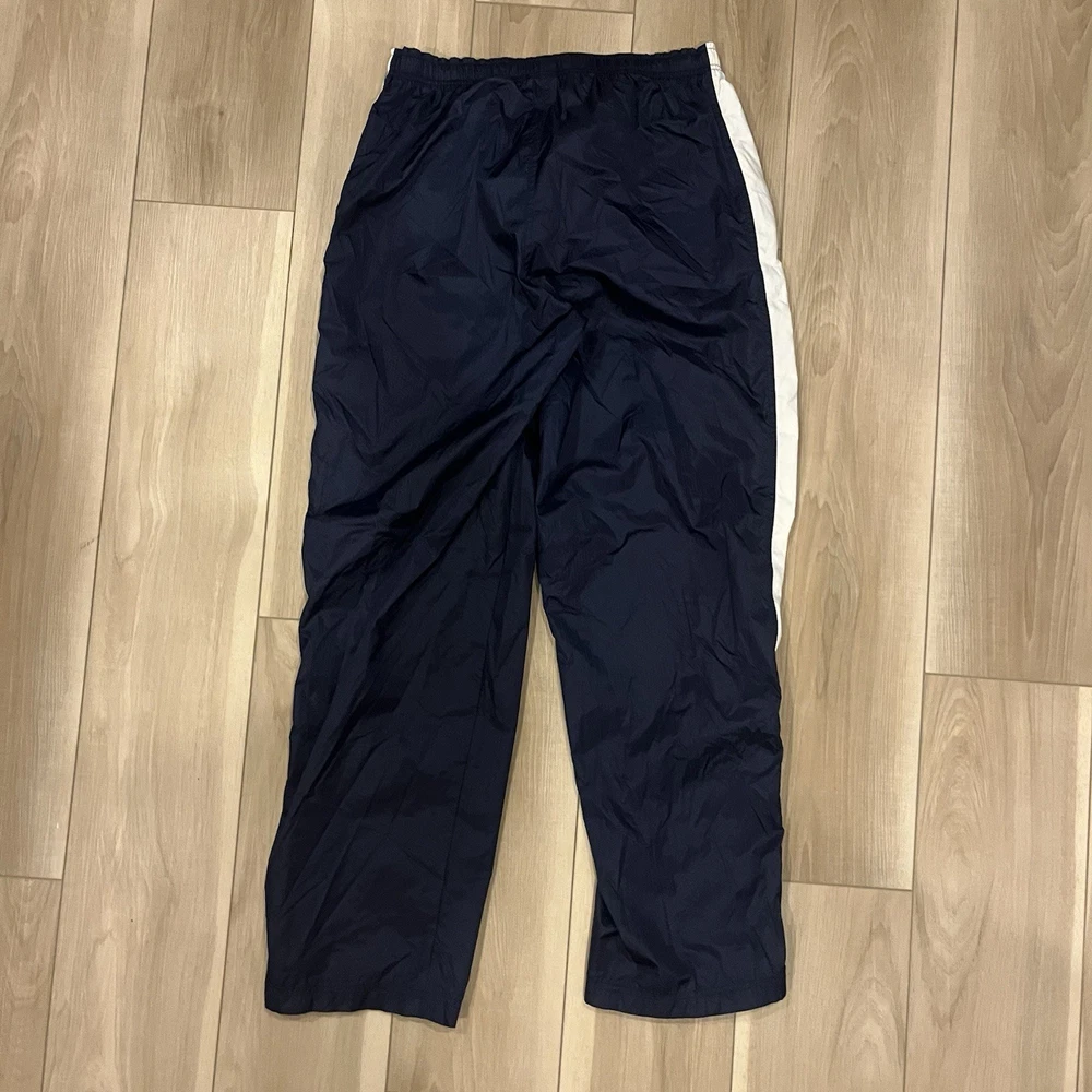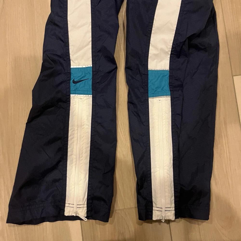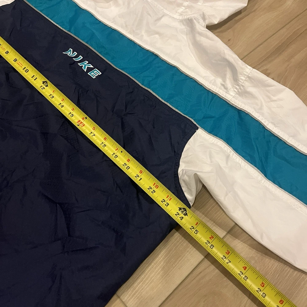 The Nike Vintage 2000s Retro White and Blue Tracksuit Set is a stylish and comfortable 2-piece set perfect for both men and women in size Large. This set features a geometric pattern with a collared neckline and long sleeves, making it ideal for activewear occasions. Made of lightweight polyester material, this tracksuit set includes a track jacket with a zip closure, embroidered Nike logo accents, and pockets for convenience. The retro white and blue color scheme adds a touch of 80s style to this classic Nike set, suitable for various seasons and activities like walking, basketball, and running & jogging.