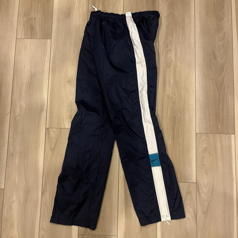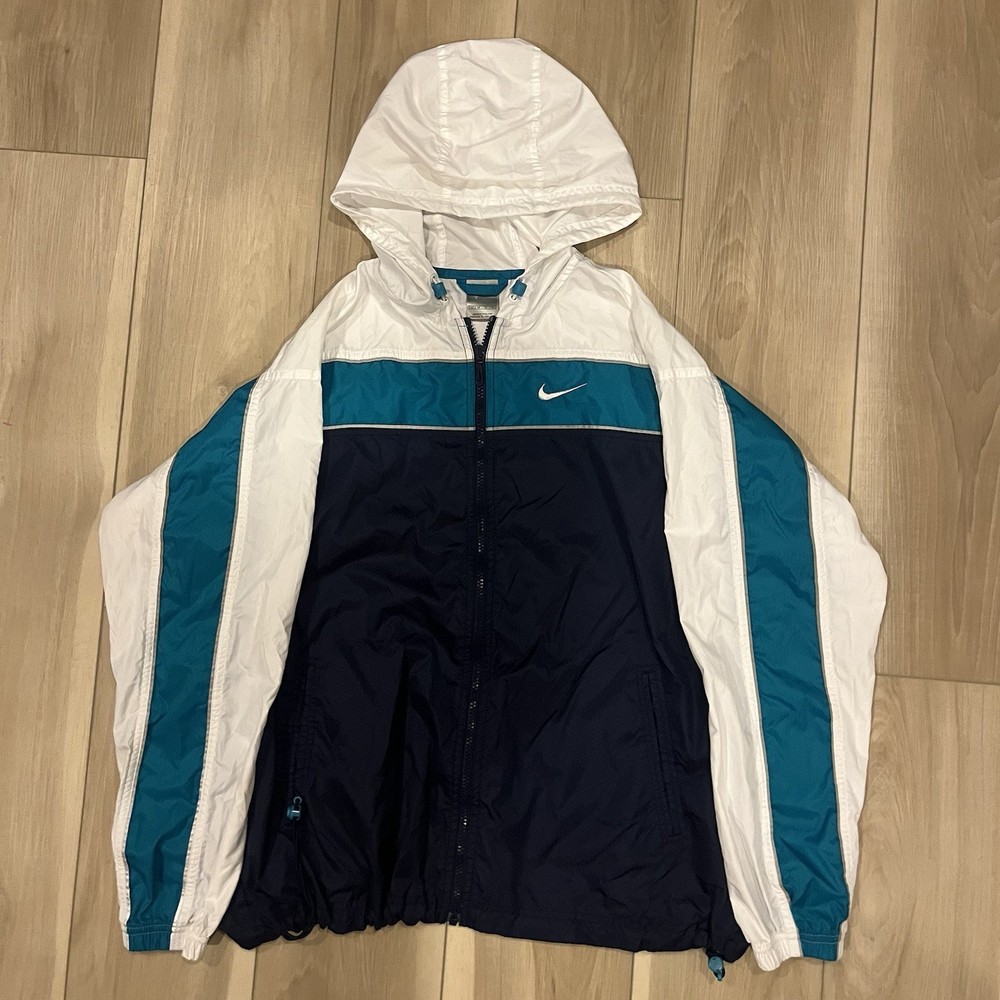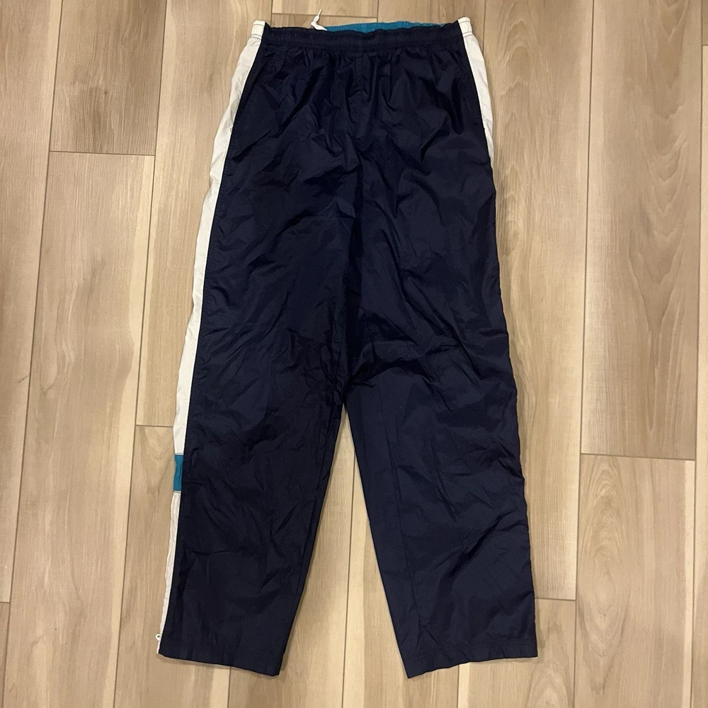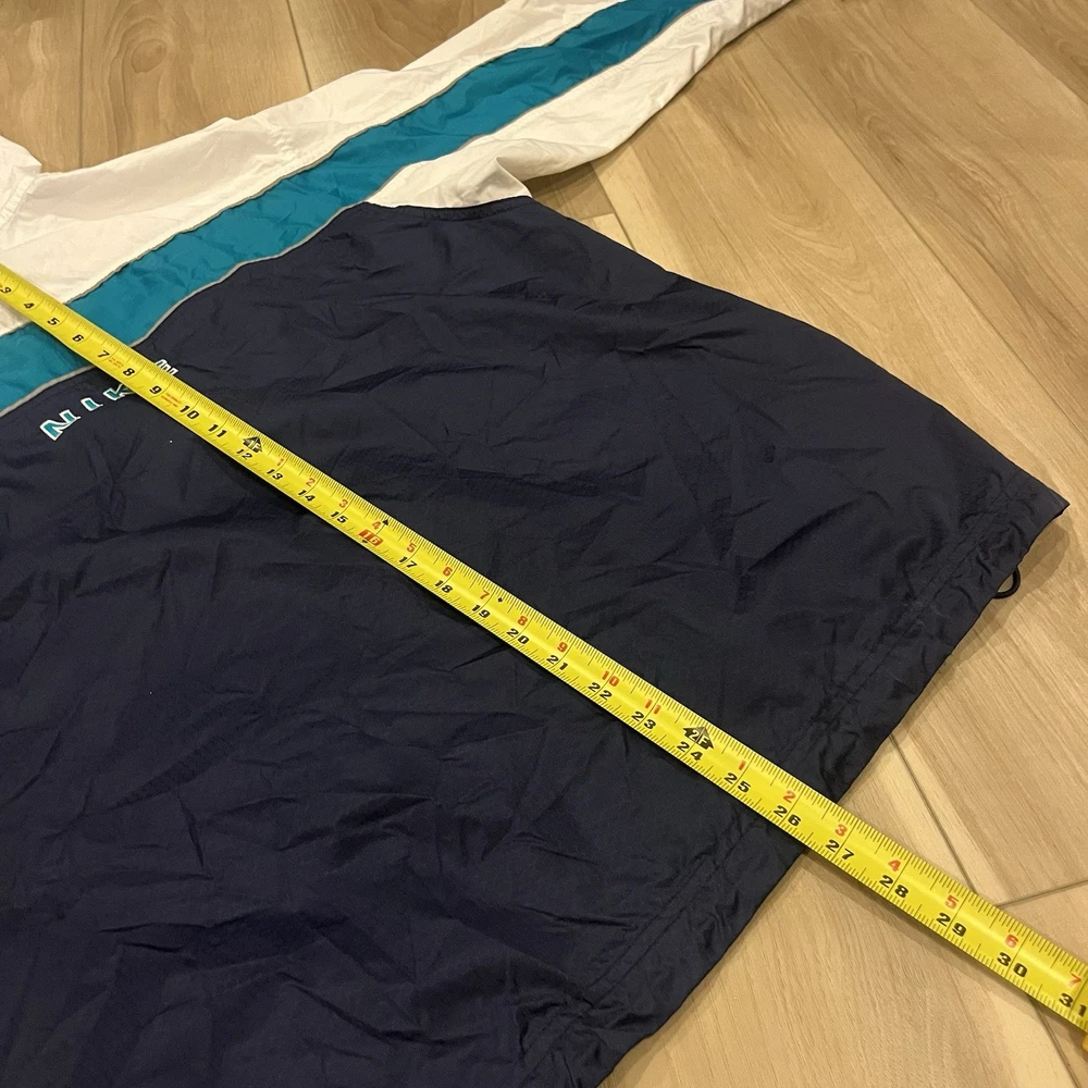 The Nike Vintage 2000s Retro White and Blue Tracksuit Set is a stylish and comfortable 2-piece set perfect for both men and women in size Large. This set features a geometric pattern with a collared neckline and long sleeves, making it ideal for activewear occasions. Made of lightweight polyester material, this tracksuit set includes a track jacket with a zip closure, embroidered Nike logo accents, and pockets for convenience. The retro white and blue color scheme adds a touch of 80s style to this classic Nike set, suitable for various seasons and activities like walking, basketball, and running & jogging.