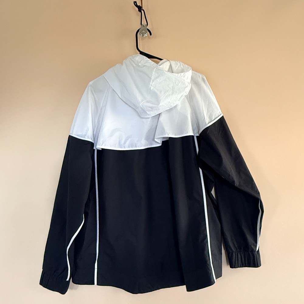 The Nike Windrunner Windbreaker Jacket Hoodie in Black White 2XL XXL is a stylish and practical mid-length jacket made from polyester with a softshell fabric type. It is designed for casual occasions with a zip closure and lightweight insulation, making it suitable for winter, fall, and spring seasons. The jacket features the iconic Nike logo as accents and comes in a classic windbreaker style, perfect for sports enthusiasts looking for a comfortable and versatile outerwear option. Machine washable and easy to care for, this jacket offers a regular fit for a comfortable and stylish look.